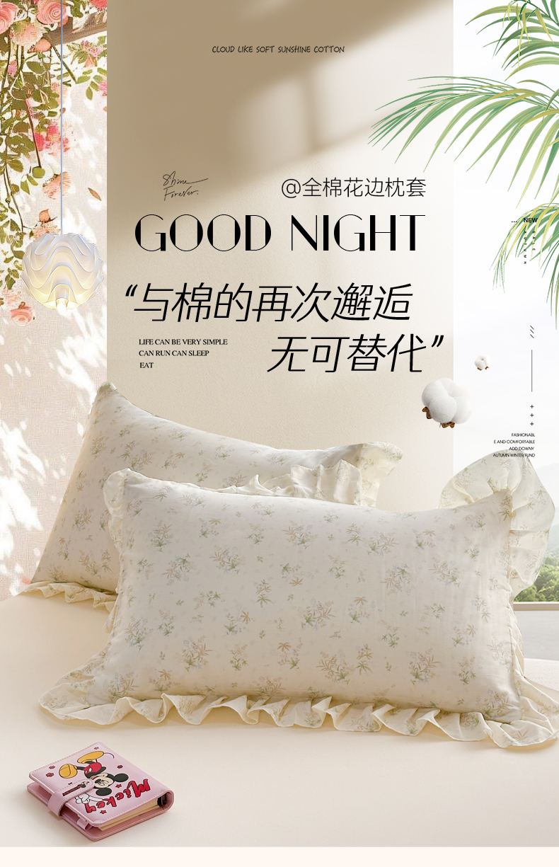 忘忧草 2026新款全棉纯棉印花精致花边枕套单枕套 枕套单件 花仙子
