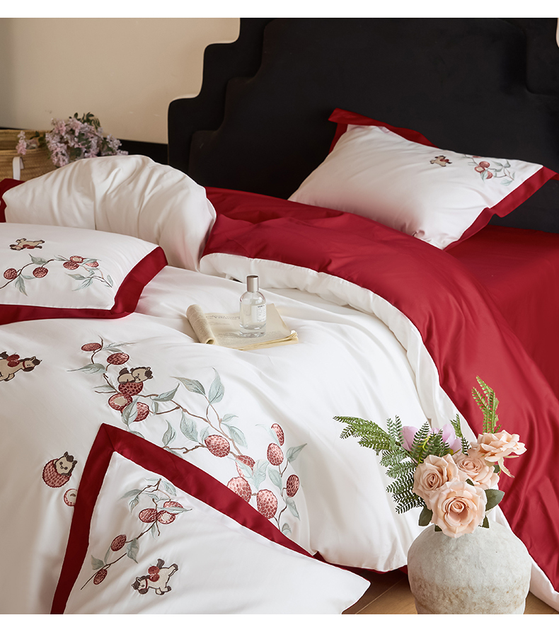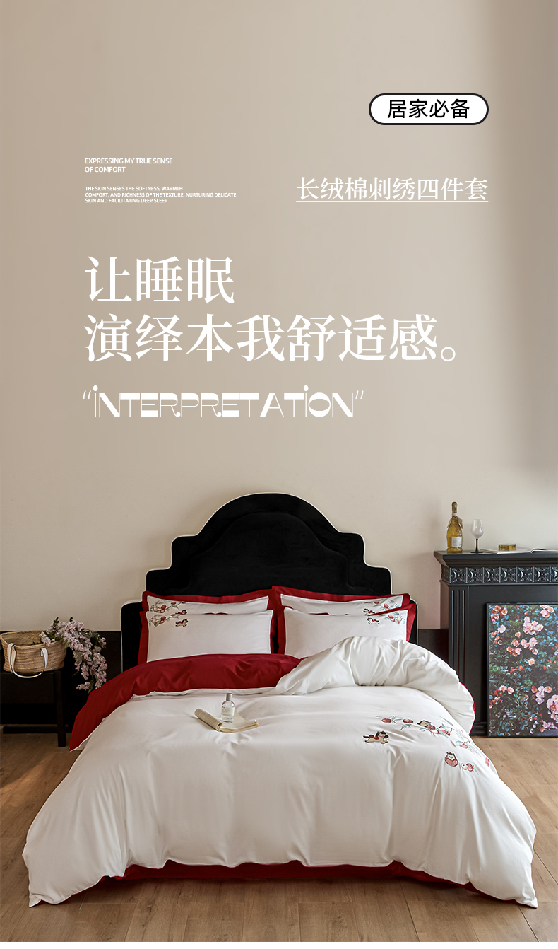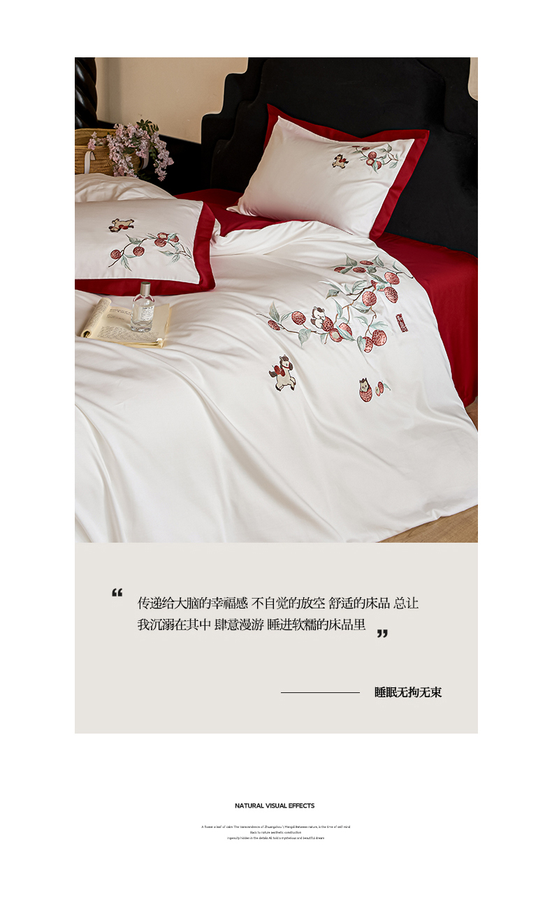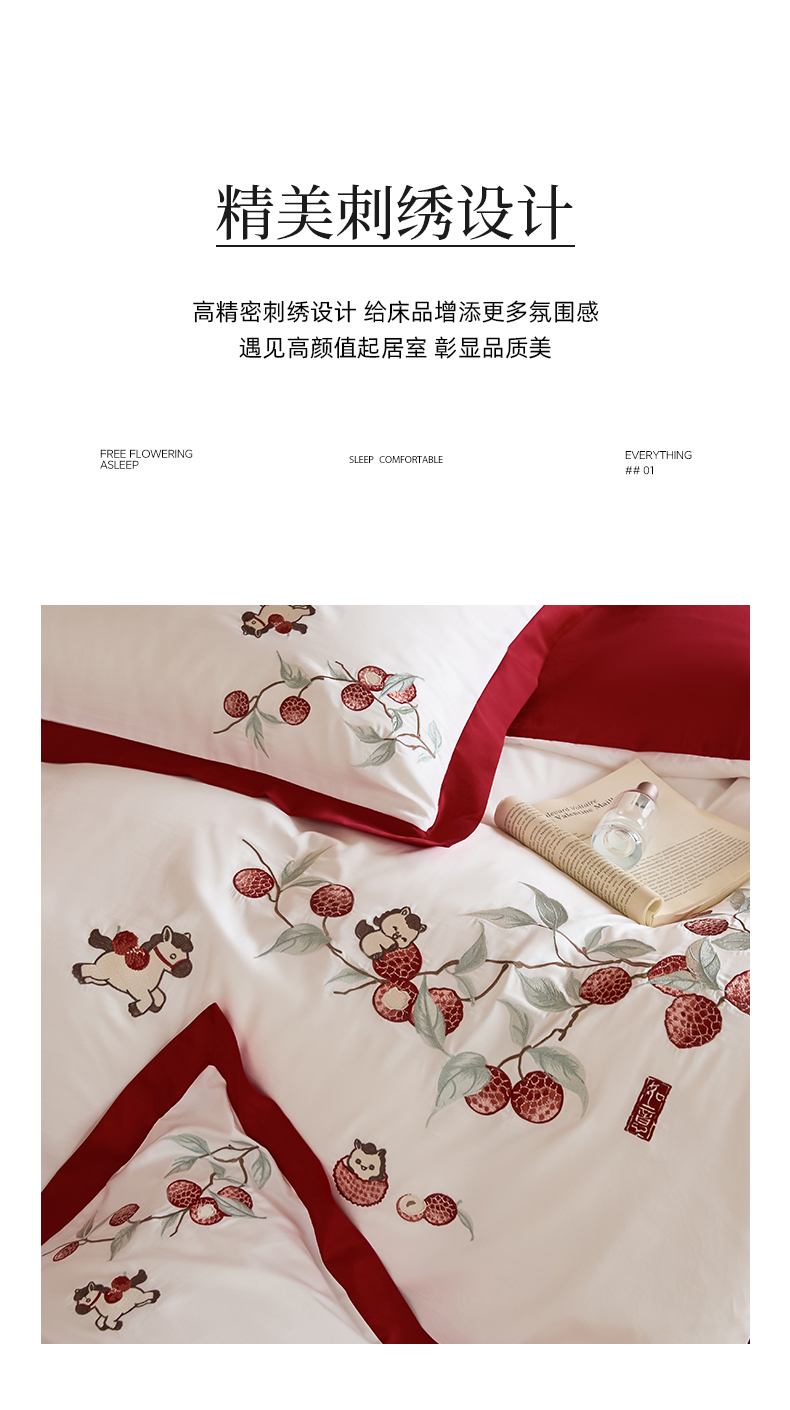 当前位置: 91家纺网 > 商品网购 > 床品套件 > 四件套 > 长绒棉四件套 > 绒掌柜家纺(品质焕新) 2026新品100S长绒棉精密刺绣四件套-马到荔成系列-版权产品-礼盒装 马到荔成-红色