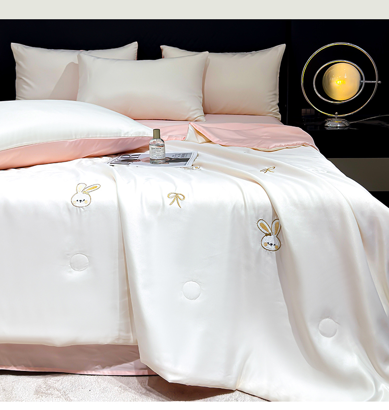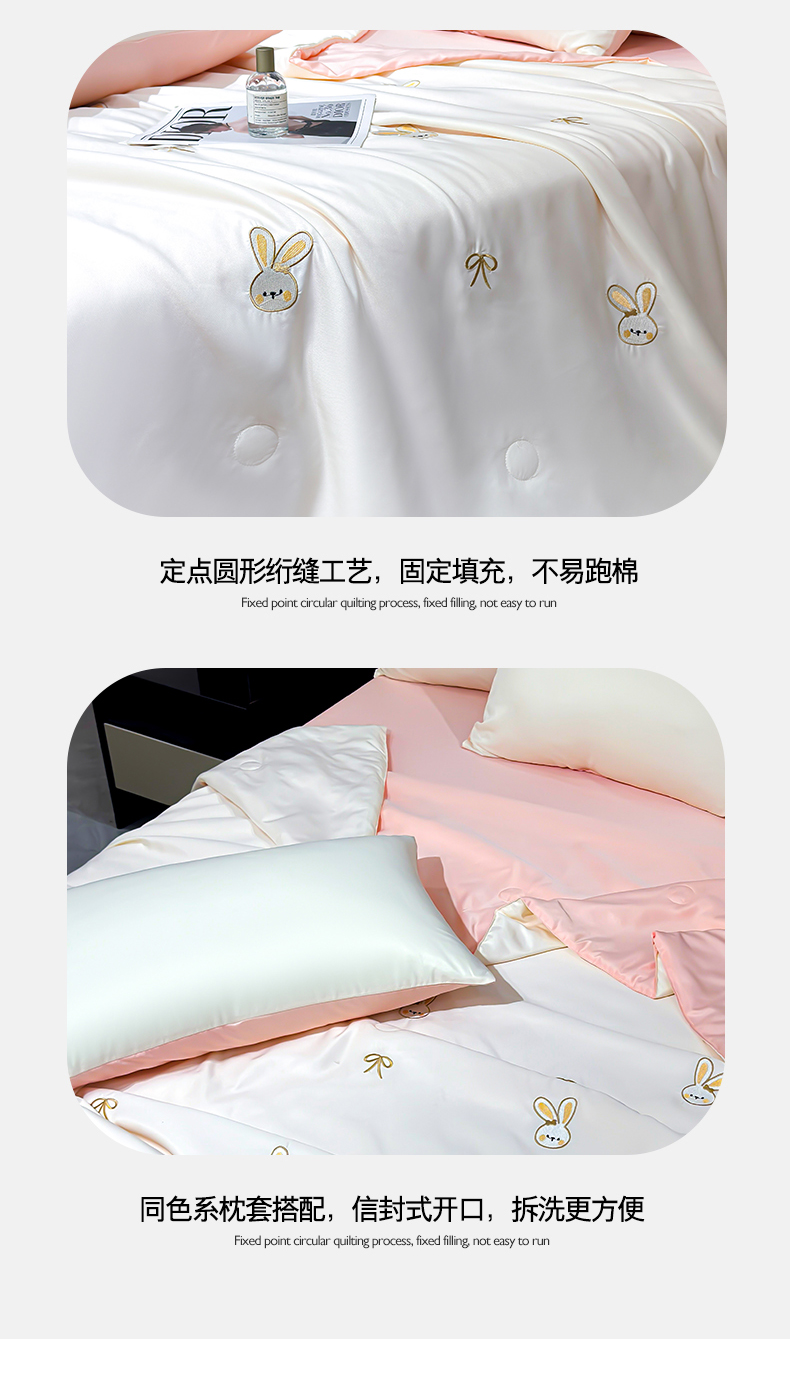 • 91家纺网 家纺一手货源 找家纺 憨豆家纺 2026新款刺绣水洗冰丝夏被四件套星球水洗真丝夏凉被(含抗菌棉)跨境外贸床笠款空 小兔-奶白粉