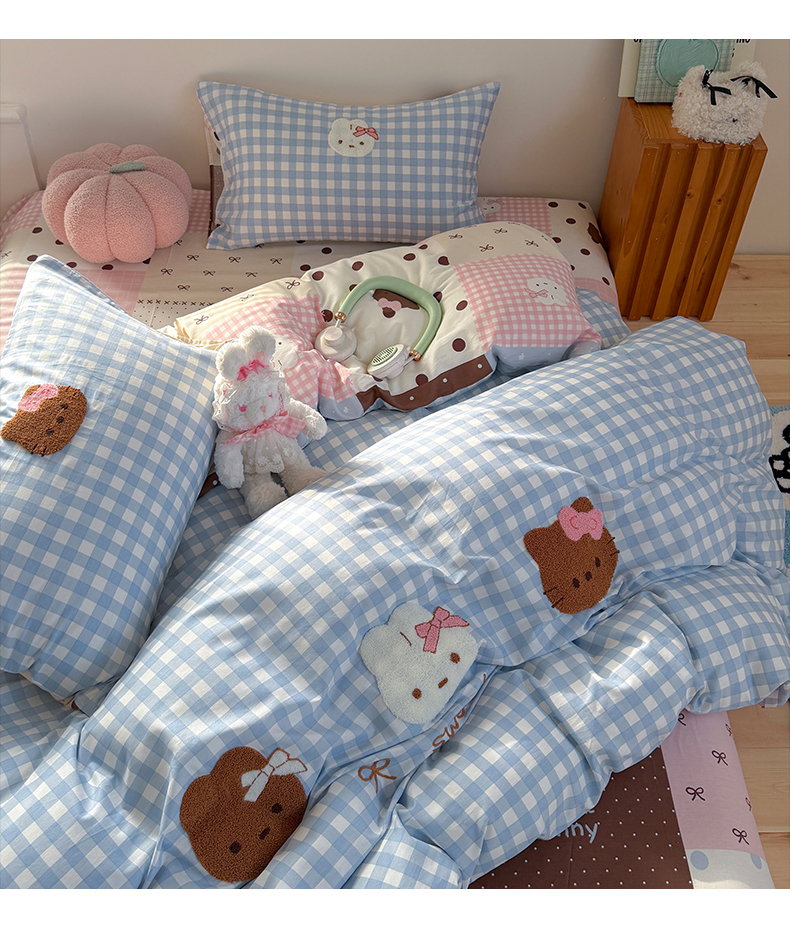 (总)暖生活 2026新款高克重细颗粒羊羔绒牛奶绒毛巾绣四件套,梅梅熊,童年时光-兰,童年时光-米,小短腿