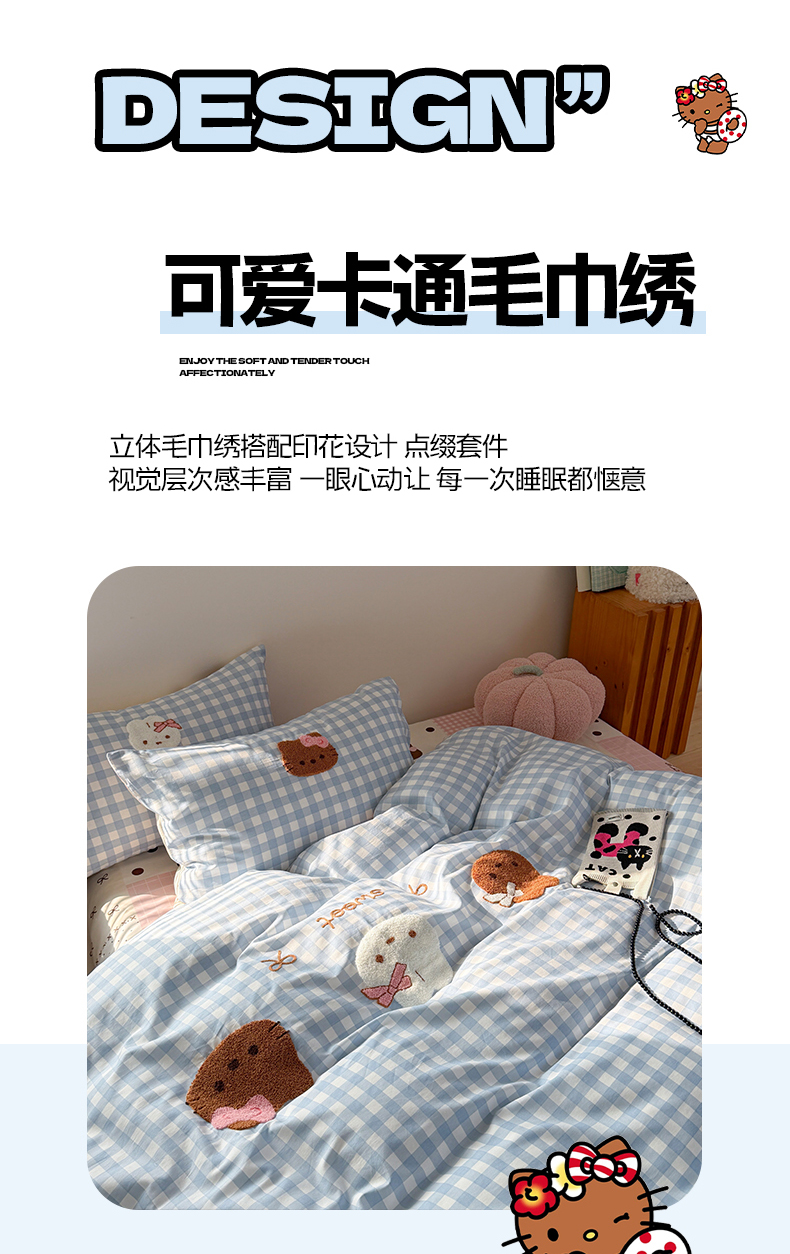 (总)暖生活 2026新款全棉纯棉色织水洗棉毛巾绣床笠三件套,组合图仅做展示不可下单,KT日记,蓝鲸梦,墨镜小狗,下雨天,小企鹅,阅读星人