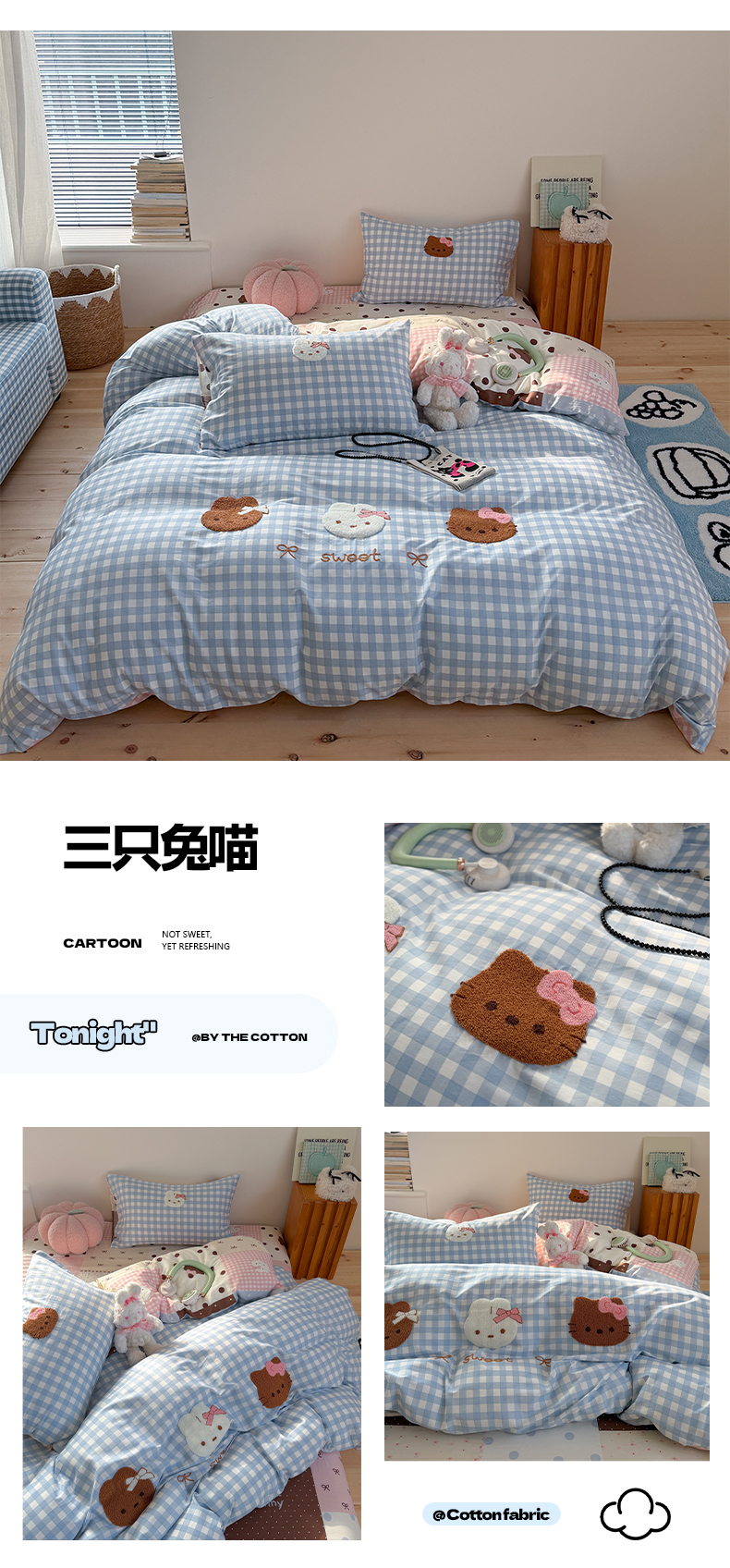 (总)暖生活 2026春夏新款A类全棉纯棉老粗布床单三件套床单单件,组合图仅供展示不可下单,老粗布-黑猫蛋糕,老粗布-红苹狗,老粗布-手办熊,老粗布-睡梦熊,老粗布-小花猫,老粗布-小蓝帽,老粗布-星球象
