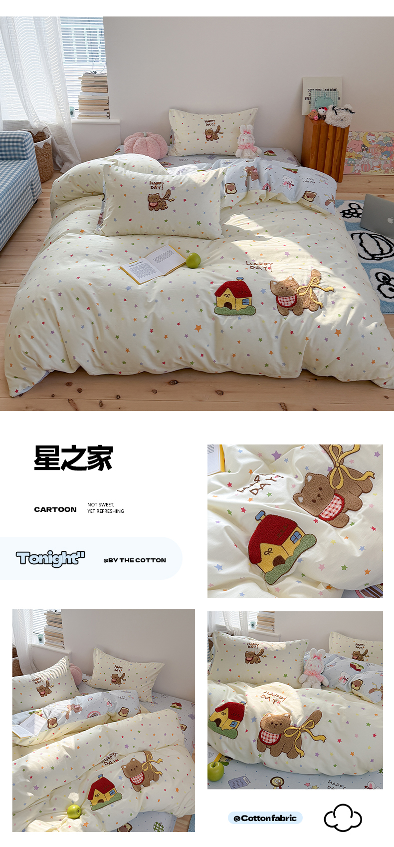 (总)暖生活 2026新款全棉纯棉水洗棉印+绣四件套(会员➖5 改床笠➕10),马上有钱,三只兔喵,汪汪脚印,星星小马,星之家,樱桃小咪