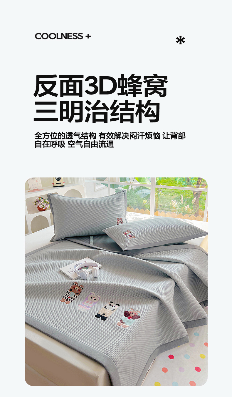 当前位置: 91家纺网 > 商品网购 > 床上用品 > 凉席 > 其他凉席 > 卡初家居(原微来) 2026春夏新款A类乙纶凉豆豆凉感席绣花席凉席席子-魔方系列 猪猪侠