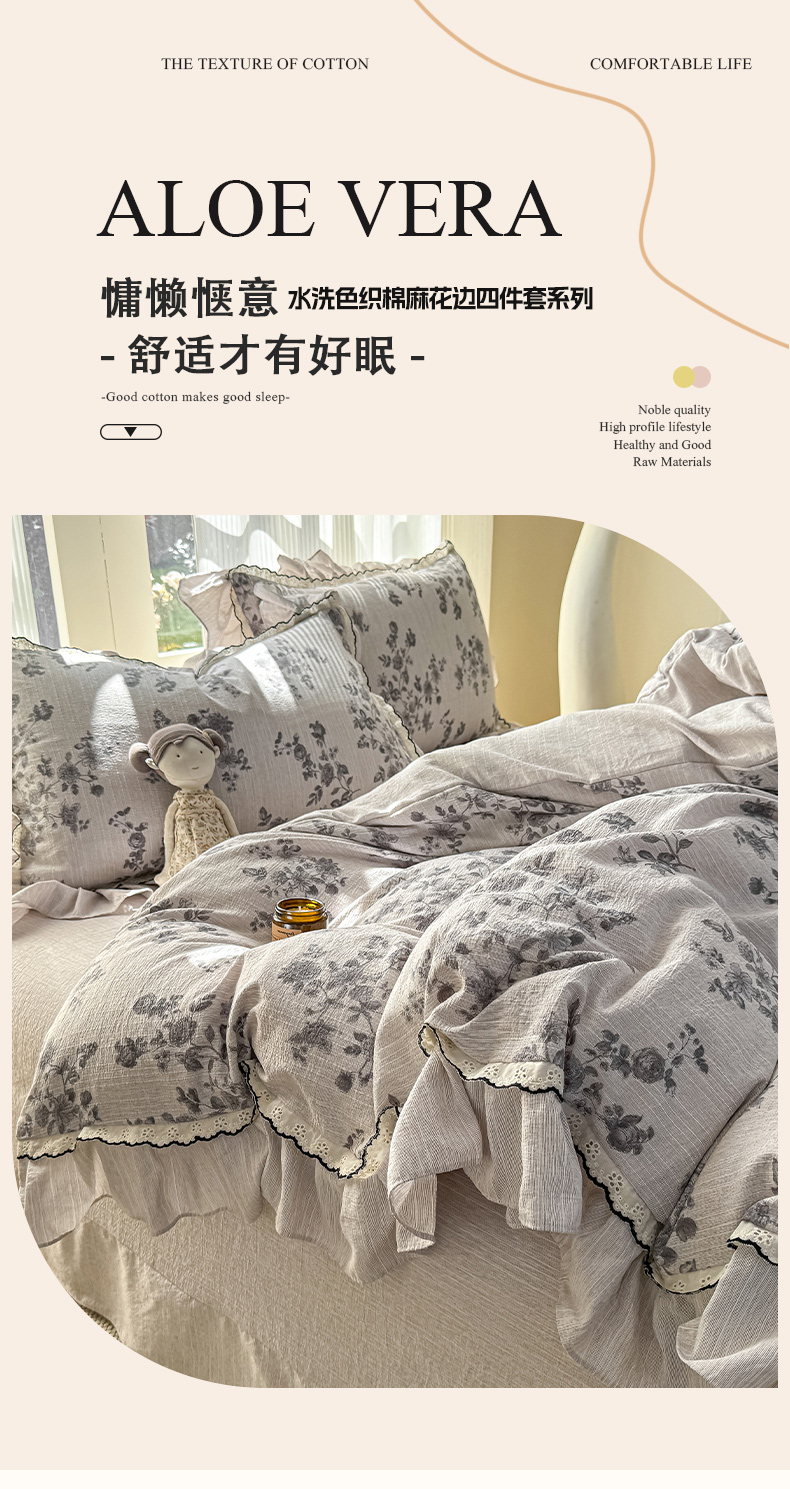 (总)大麦家纺 2026新款水洗色织棉麻花边四件套,黯费尔岛,点点木马,繁花,繁花似锦,粉雾觅境,复古铃兰,花枝展招,玫瑰之吻,梦初华,梦蝴蝶,企鹅时光,软糖草莓,素雅情调,甜心咔熊,小鹿乱撞,樱桃梦境,幽兰雪魅,原野青提,枝含羞