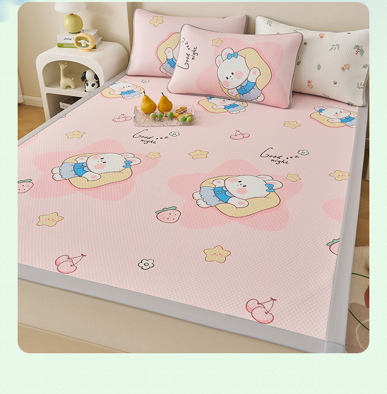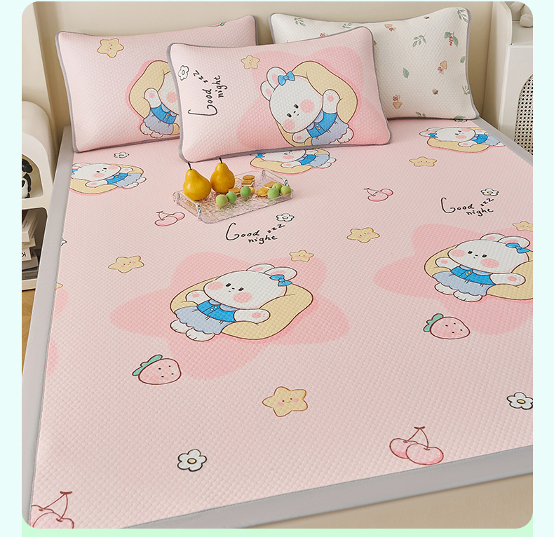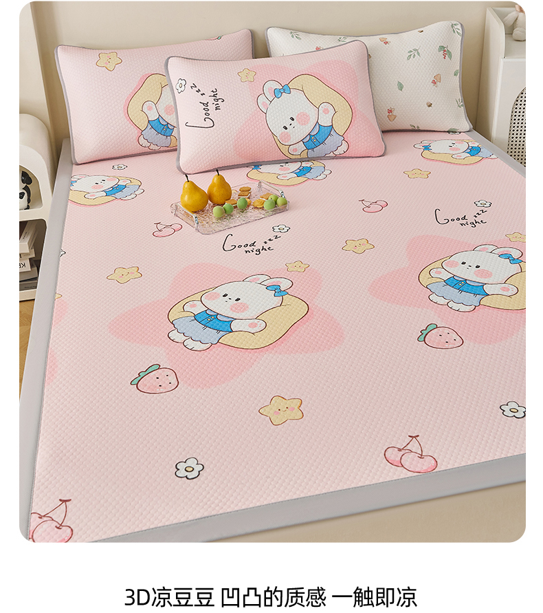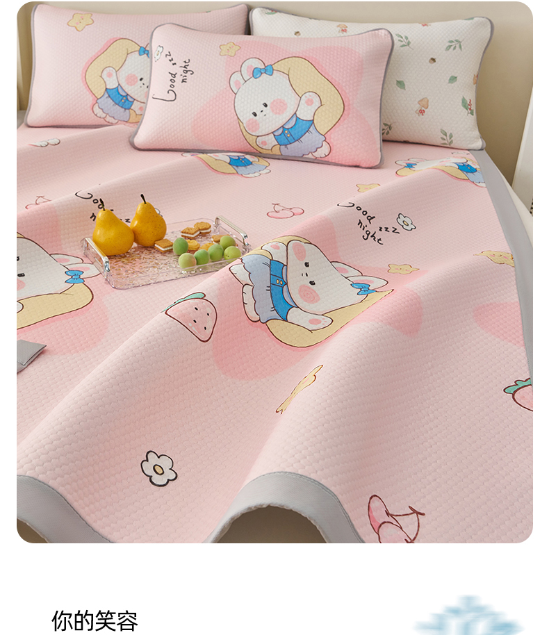 家品罗兰 2026新款夏季A类印花冰豆豆凉席三明治透气网冰丝凉席家用双人冰丝席床单-大床图 兔宝贝