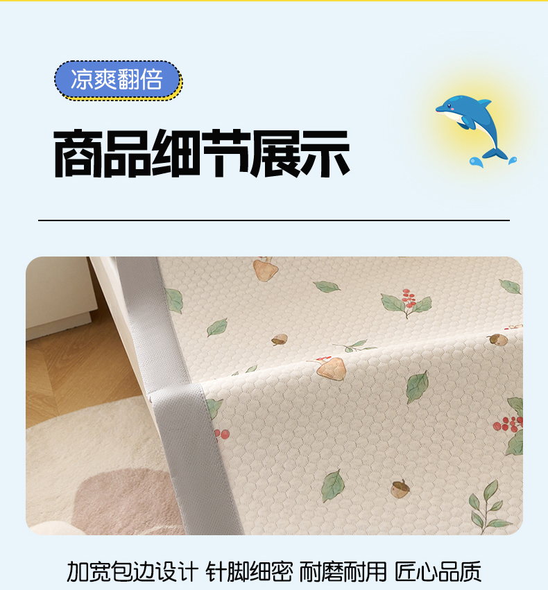 当前位置: 91家纺网 > 商品网购 > 床上用品 > 凉席 > 其他凉席 > 家品罗兰 2026新款夏季A类印花冰豆豆凉席三明治透气网冰丝凉席家用双人冰丝席床单-学生床 蘑菇乐园