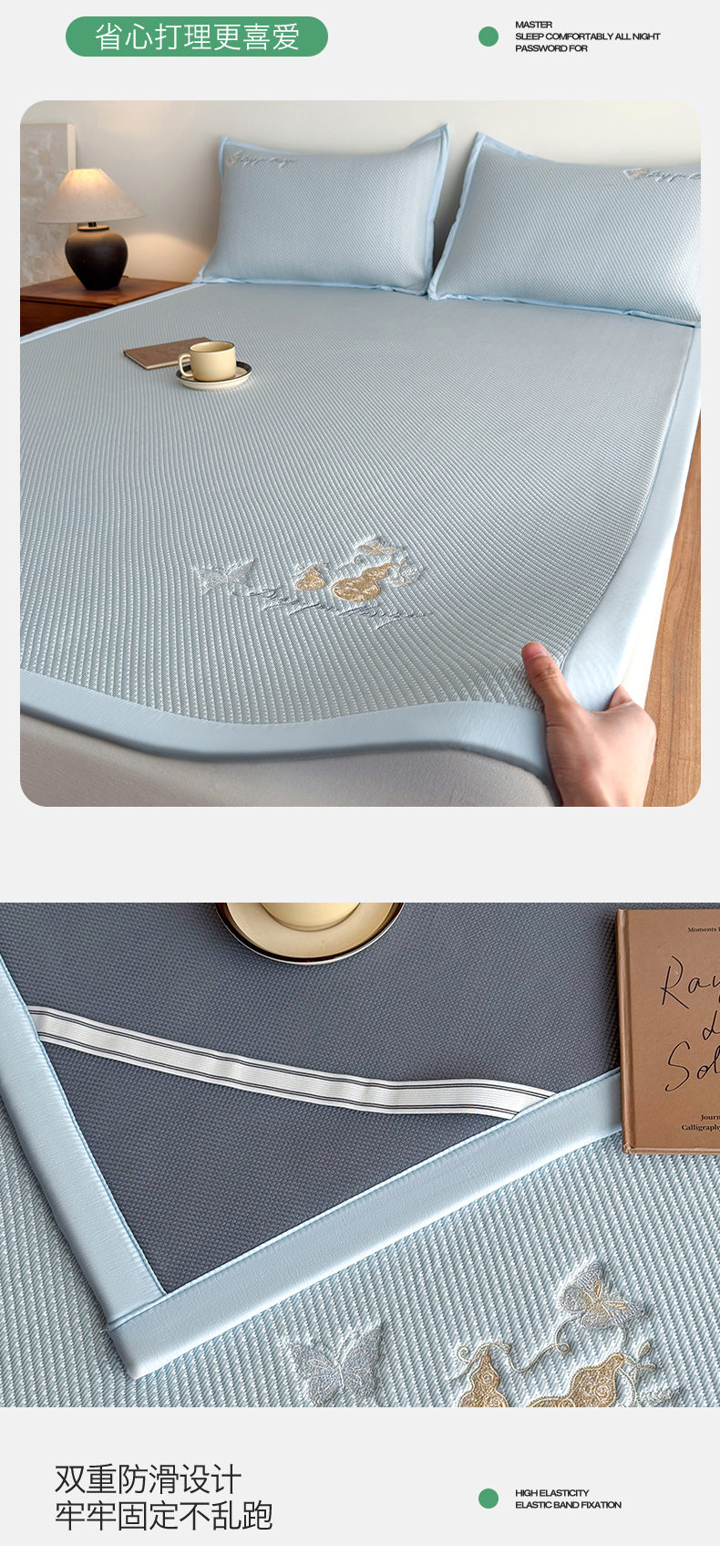 当前位置: 91家纺网 > 商品网购 > 床上用品 > 凉席 > 其他凉席 > 鑫姿席业 2026新款5A抗菌PE提花凉感席凉席席子蝶舞福禄 蝶舞福禄-蓝(床笠款)