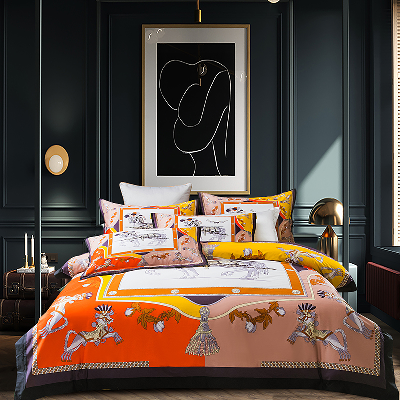 色鬼布艺高端家居主号 2026新款外贸跨境欧美轻奢100支长绒棉纯棉印花四件套 群马黄