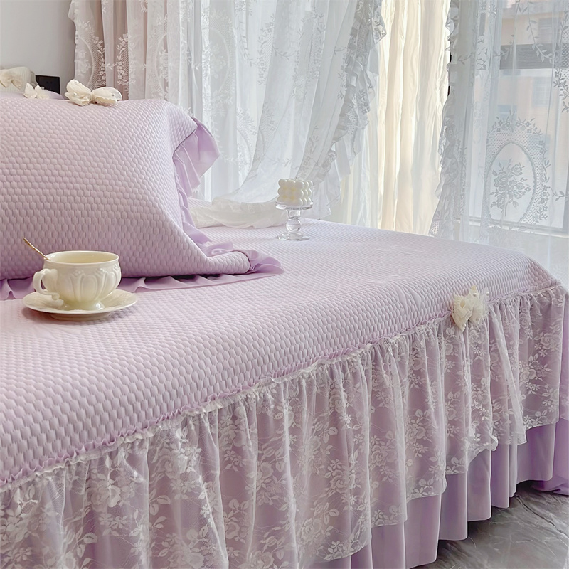 (总)恋尚羽 2026新款高分子PE凉泡泡大床裙凉感席波浪冰豆豆凉席席子三件套-系列 山茶可可,粉色,灰色,咖色,蓝色,绿色,米白色,紫色