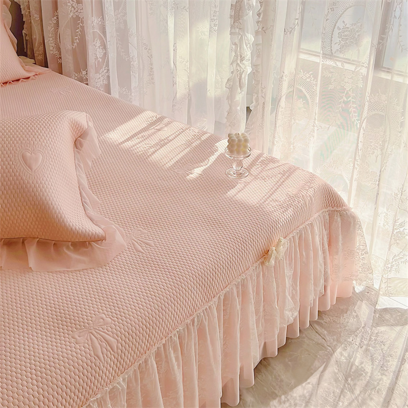 (总)恋尚羽 2026新款高分子PE凉泡泡大床裙凉感席波浪冰豆豆凉席席子三件套-蝴蝶结系列手捧花,粉色,灰色,咖色,兰色,绿色,紫色