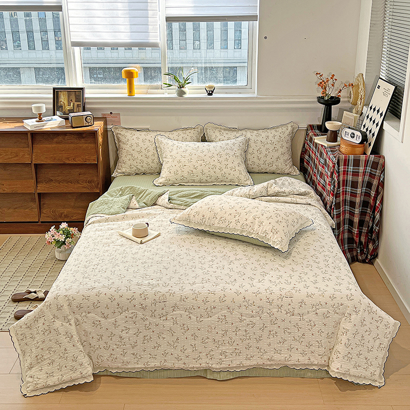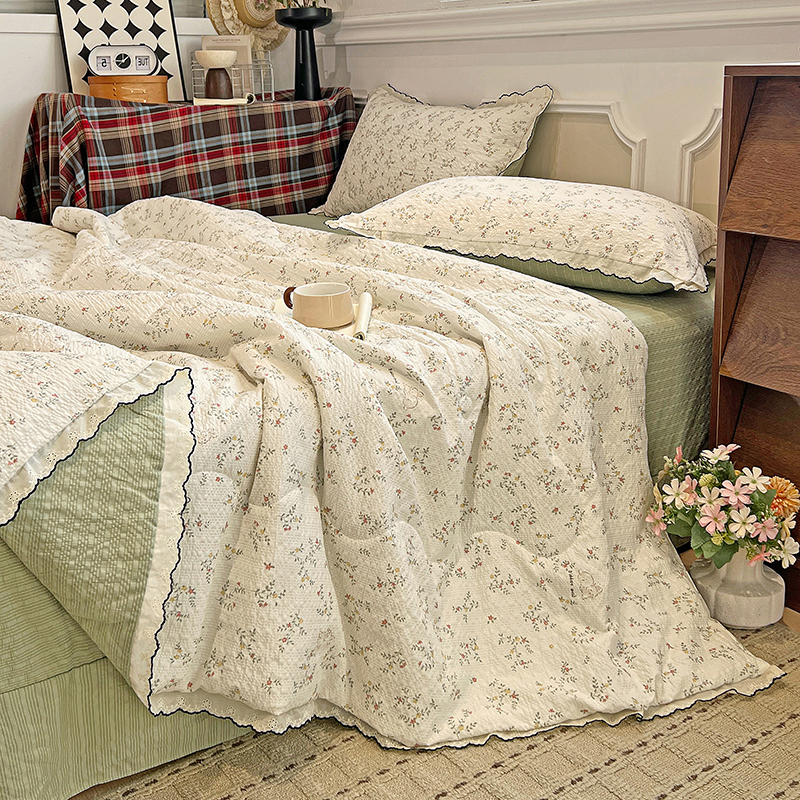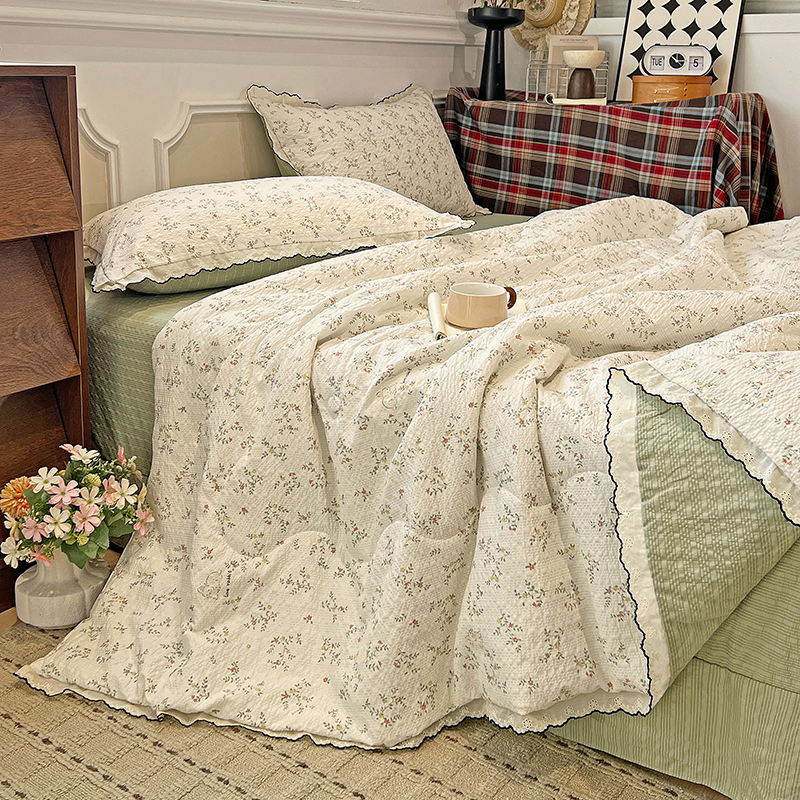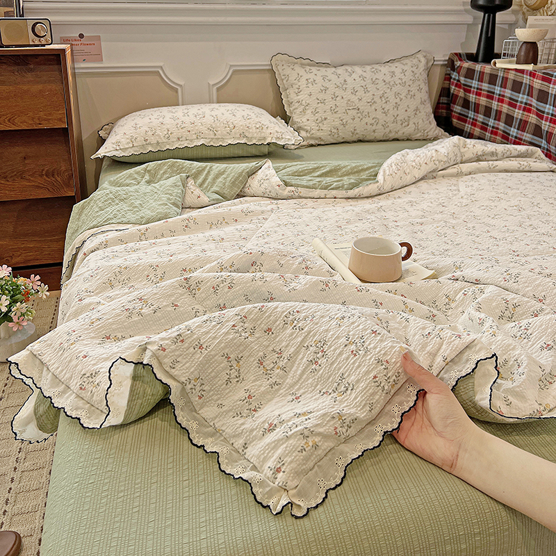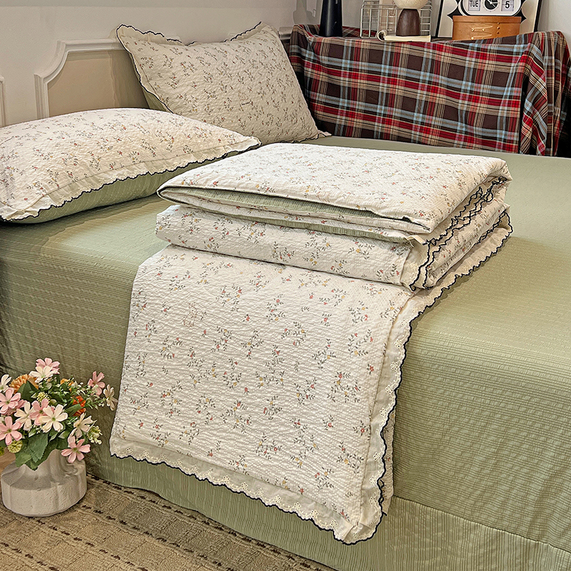 (总)梦莱斯 2025新款田园碎花纯棉花边四件套-床盖款,采薇,花精灵,花开半夏,莱茵,恋爱季,绿叶仙踪,糜花似锦,糜花熙悦,秘境花园