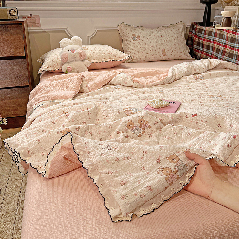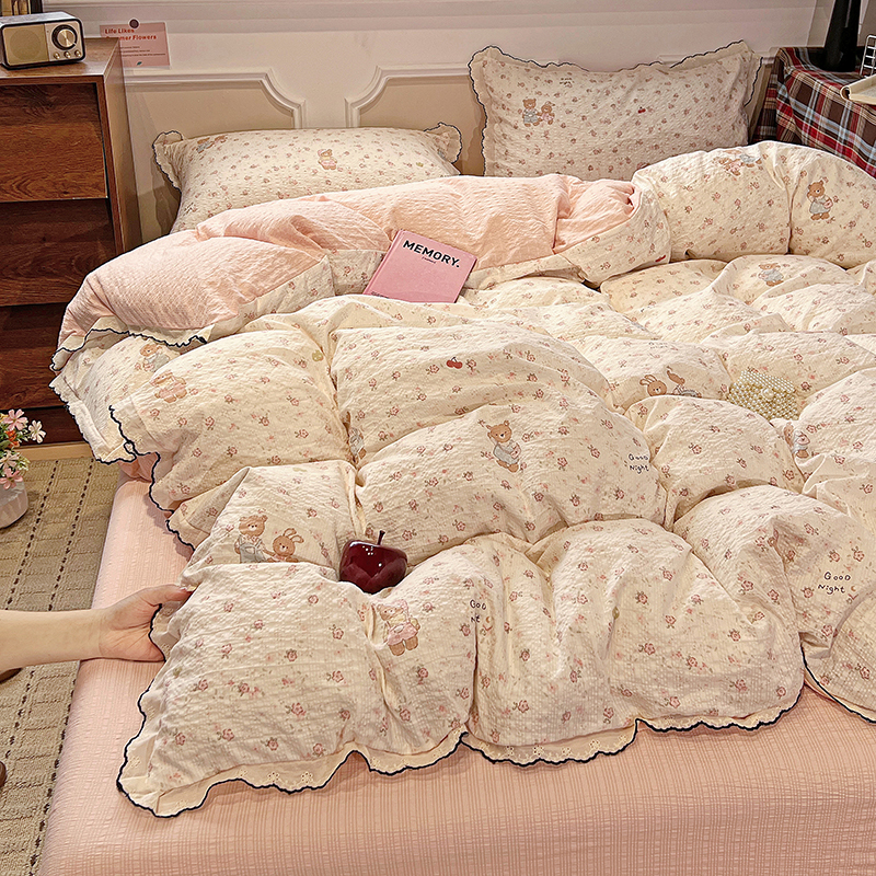 (总)梦莱斯 2026新款ins小清风水洗棉花边床盖四件套,草莓冰淇淋粉,草莓冰淇淋米,粉樱花笺,格子小熊,花漫歌,焦糖甜心,卡迪娜,罗莉莎,萌萌熊,迷你樱桃,喵喵-米黄,蘑菇莉,奶黄花笺,南语小象,暖阳星芒,青提花影,清源,纱漫粉,纱漫紫,文艺少女,雾紫花漾,小南庭,小熊碎梦町,心岚,旋转木马,薰衣草信,雅漾粉,雅漾灰