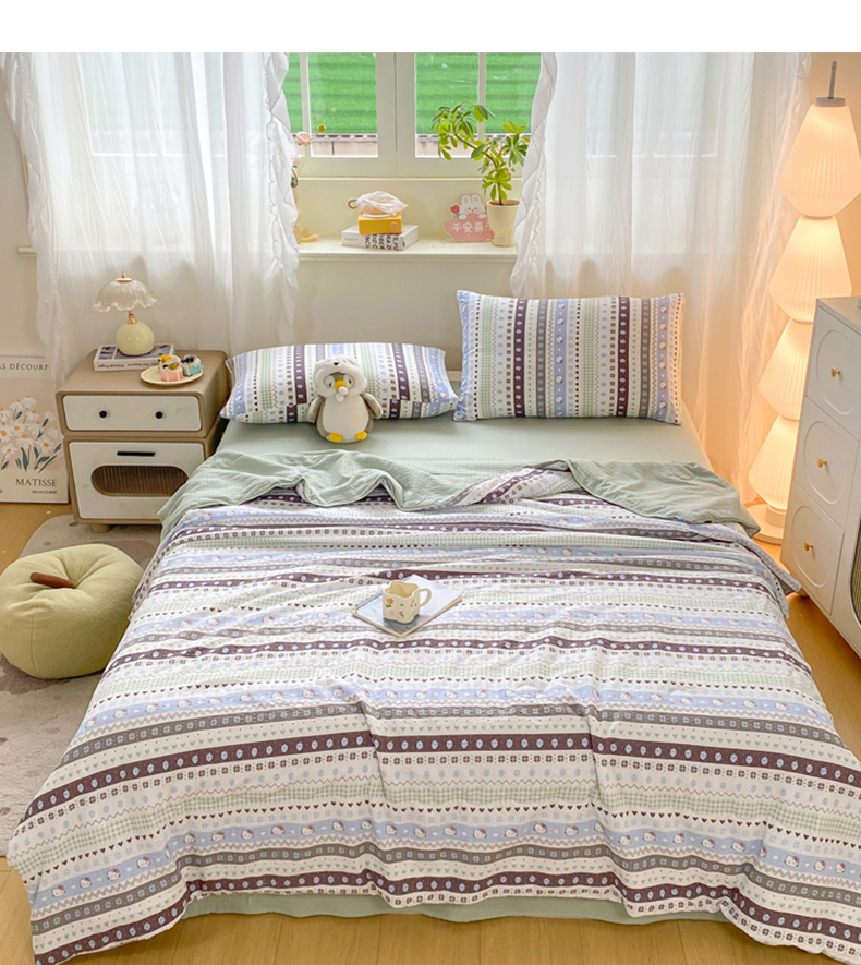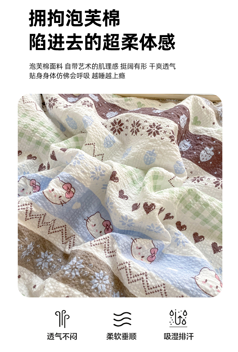当前位置: 91家纺网 > 商品网购 > 被子 > 夏被 > 爱屋及屋 2026新款泡芙棉夏被夏凉被空调被四件套 甜心凯特绿