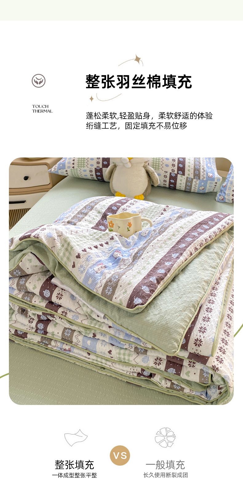 • 91家纺网 家纺一手货源 找家纺 爱屋及屋 2026新款泡芙棉夏被夏凉被空调被四件套 甜心凯特绿
