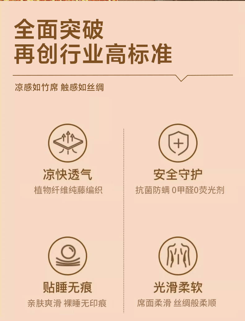 当前位置: 91家纺网 > 商品网购 > 床上用品 > 凉席 > 藤席 > (总)缦吉 2026新款植物草本凉感刺绣藤席凉席-马上平安