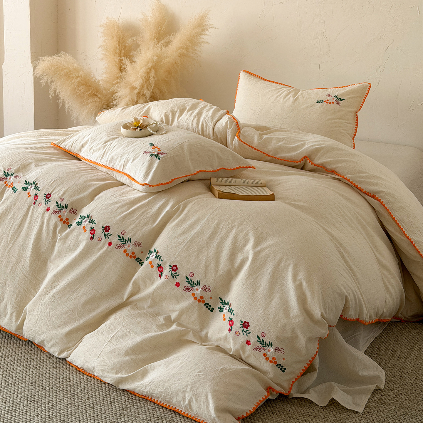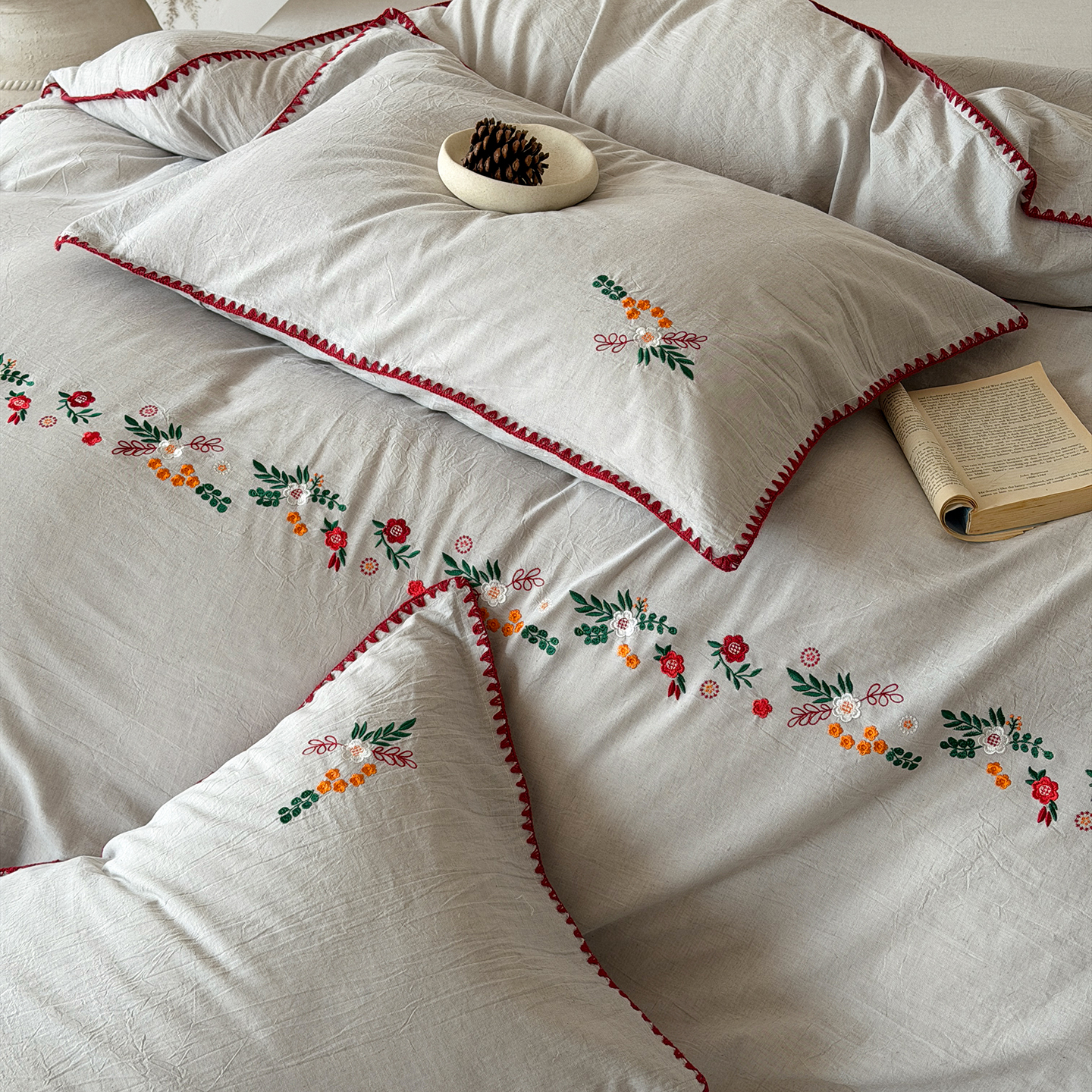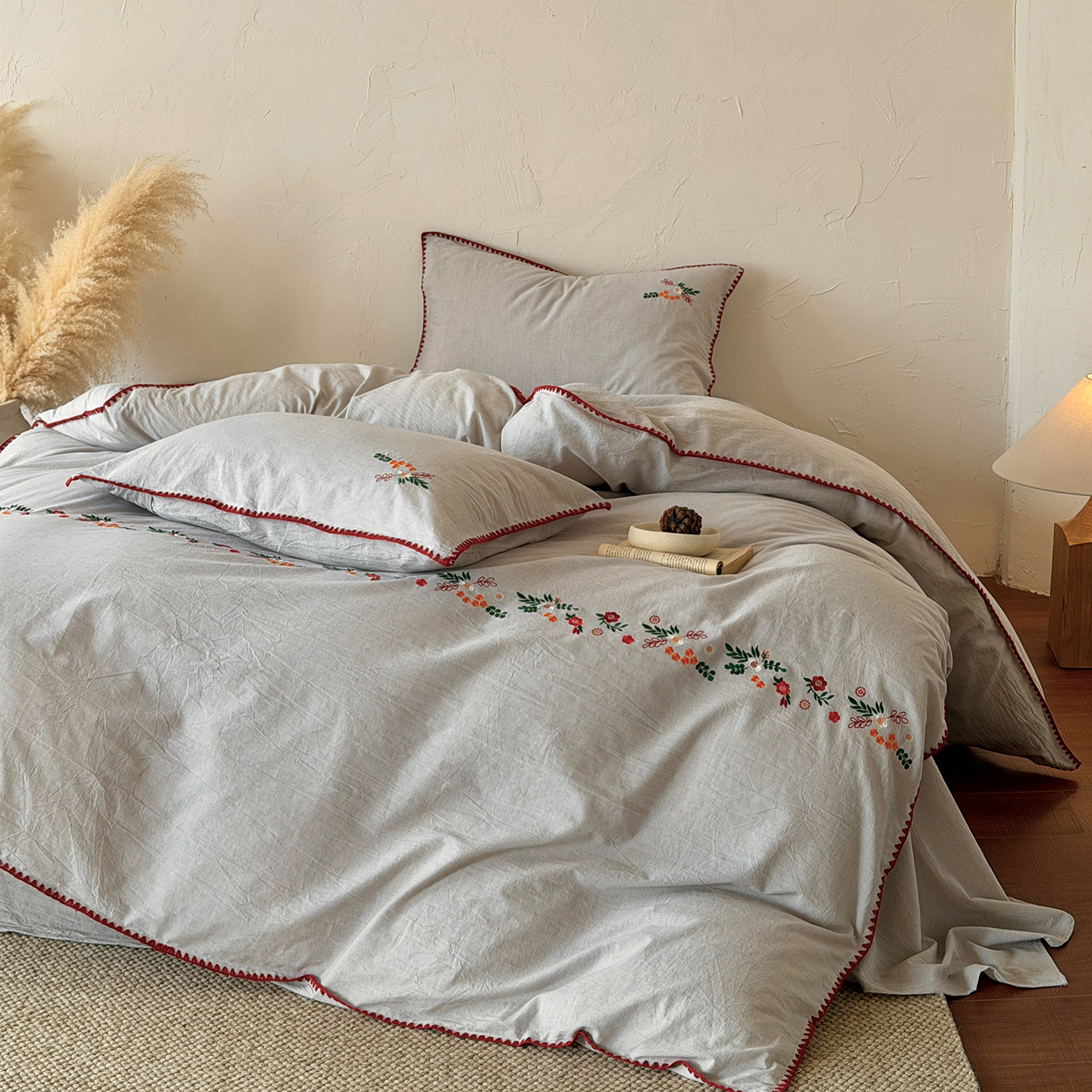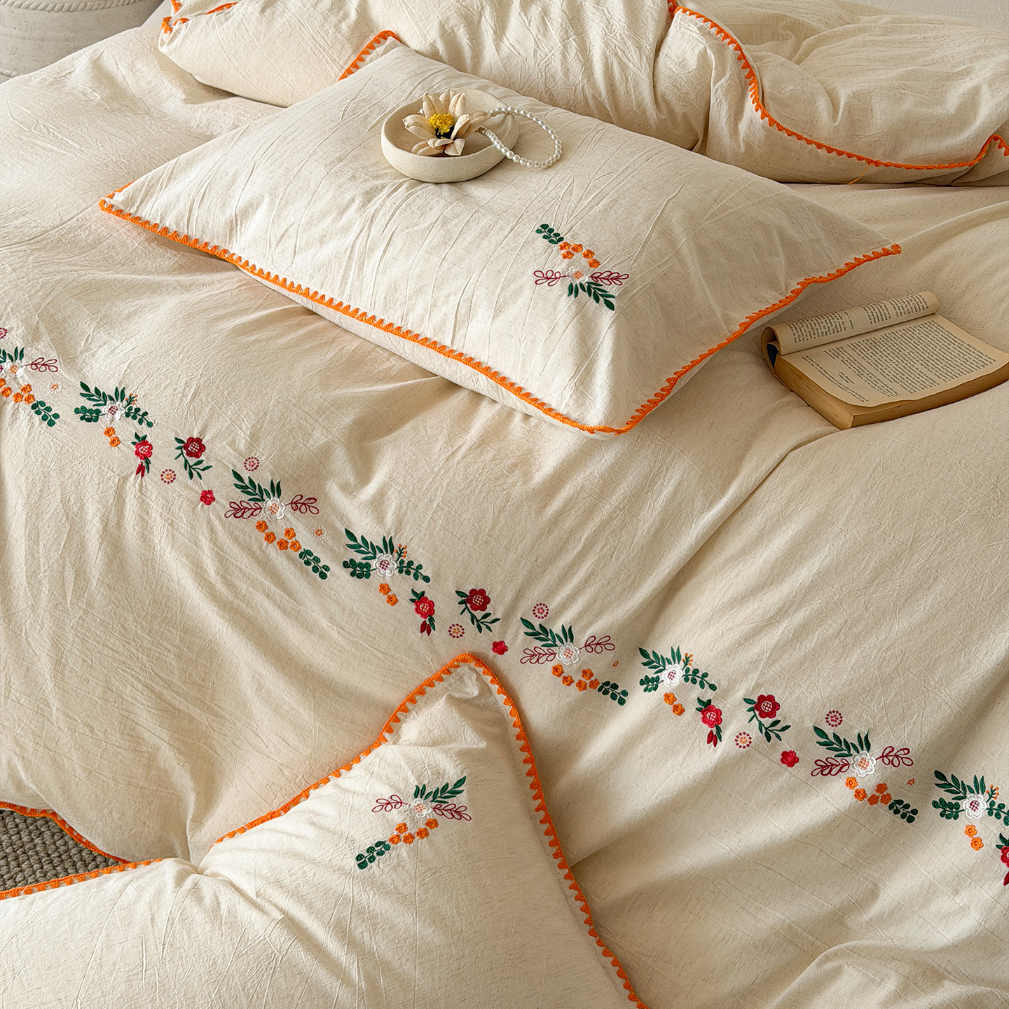 当前位置: 91家纺网 > 商品网购 > 床品套件 > 四件套 > 其它四件套 > (总)淑女公社家纺 2026春夏新款贝壳边刺绣绣花棉麻四件套-柔朴乡野