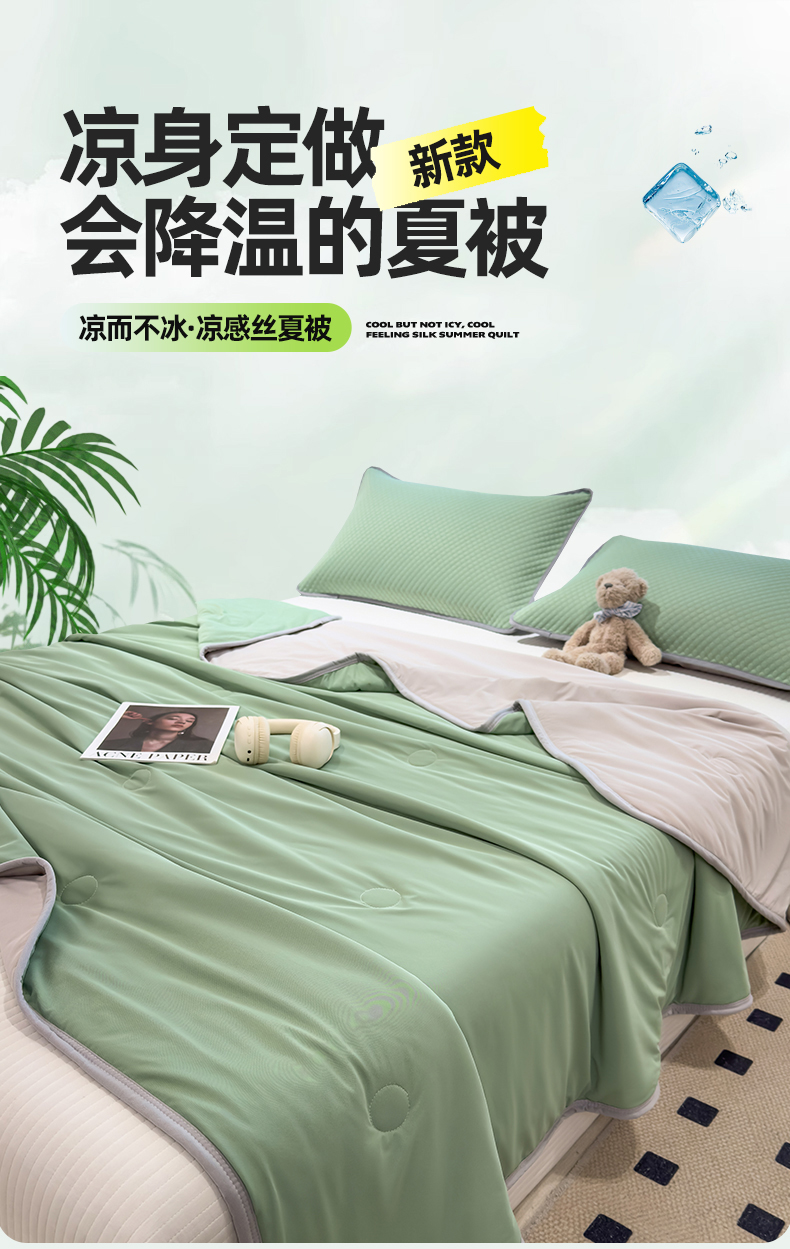 当前位置: 91家纺网 > 商品网购 > 床上用品 > 凉席 > 其他凉席 > 乐家欣 2026新款凉感冰丝夏被床笠四件套 凉感夏被-松绿
