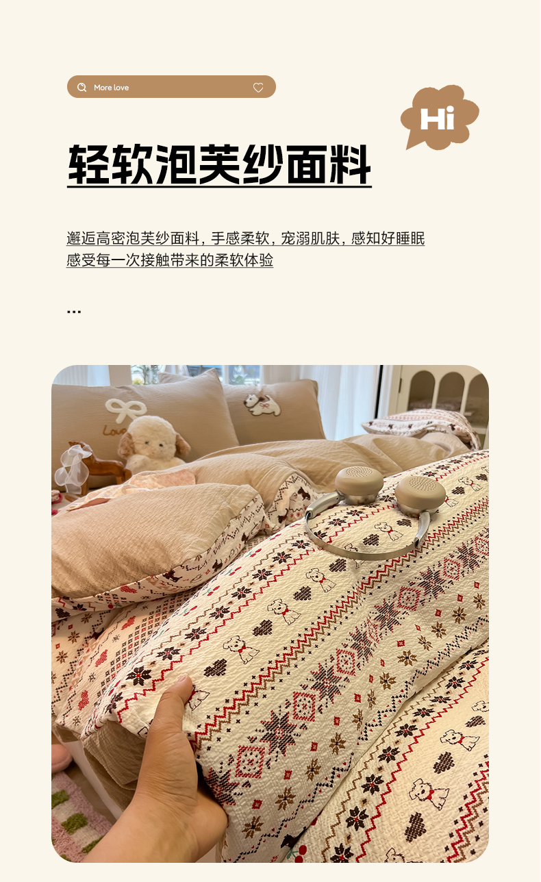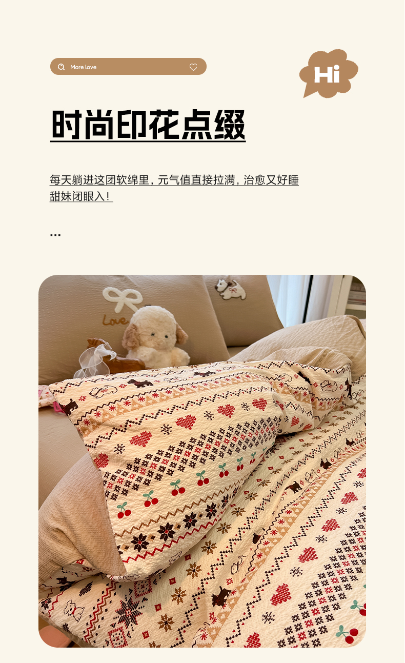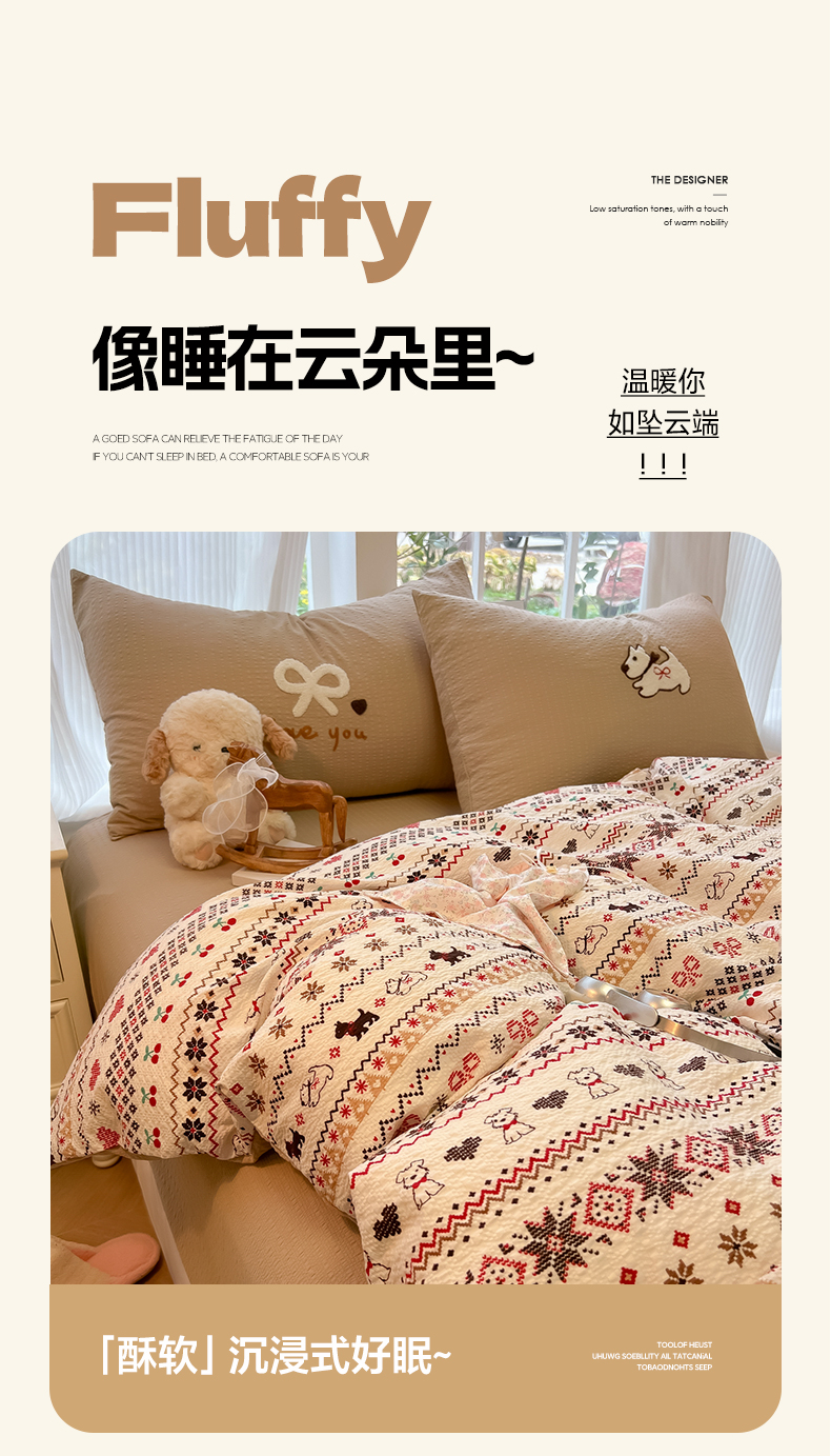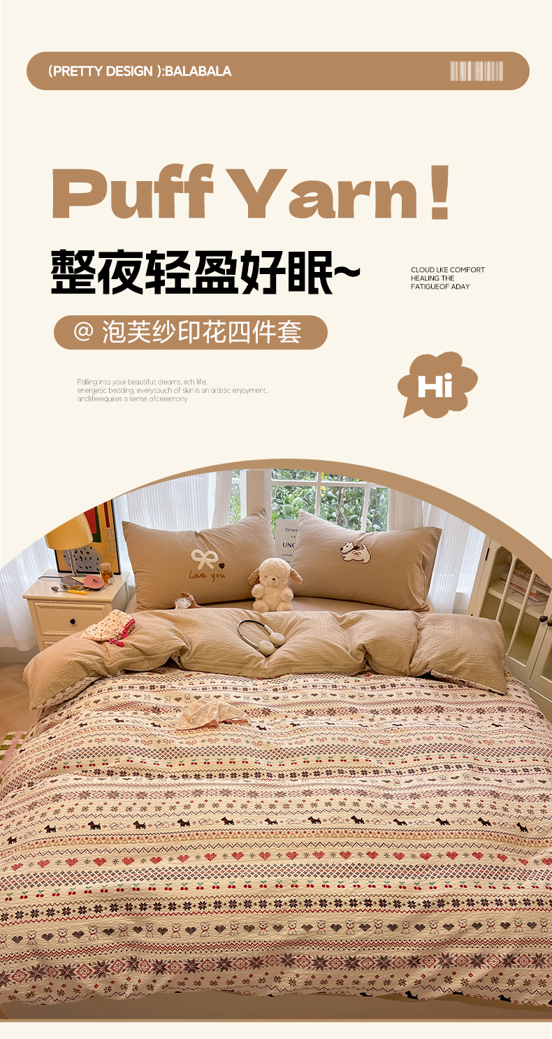 当前位置: 91家纺网 > 商品网购 > 床品套件 > 四件套 > 毛巾绣四件套 > 韩巢家纺 2026新款泡芙纱费尔岛毛巾绣四件套 萌物条条-毛巾绣