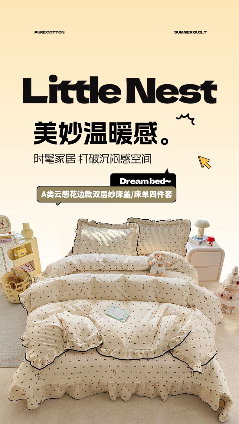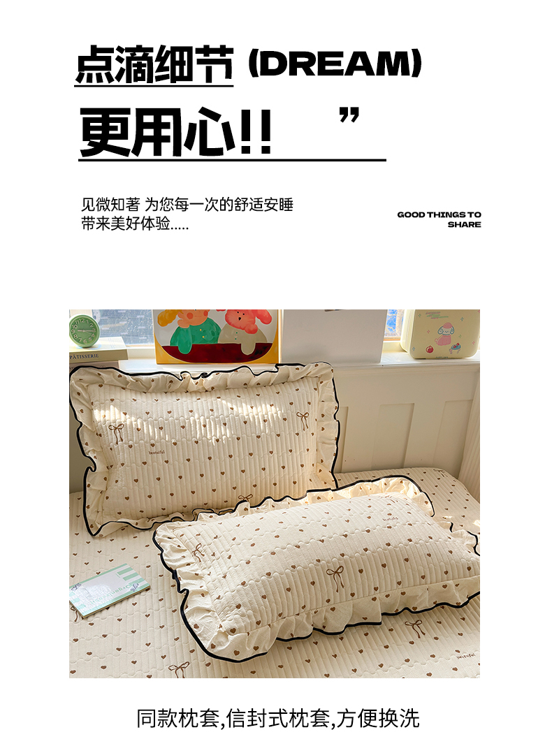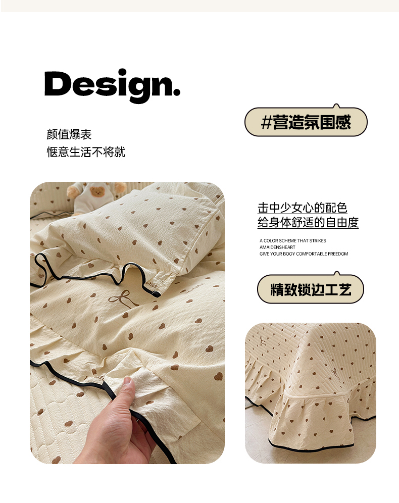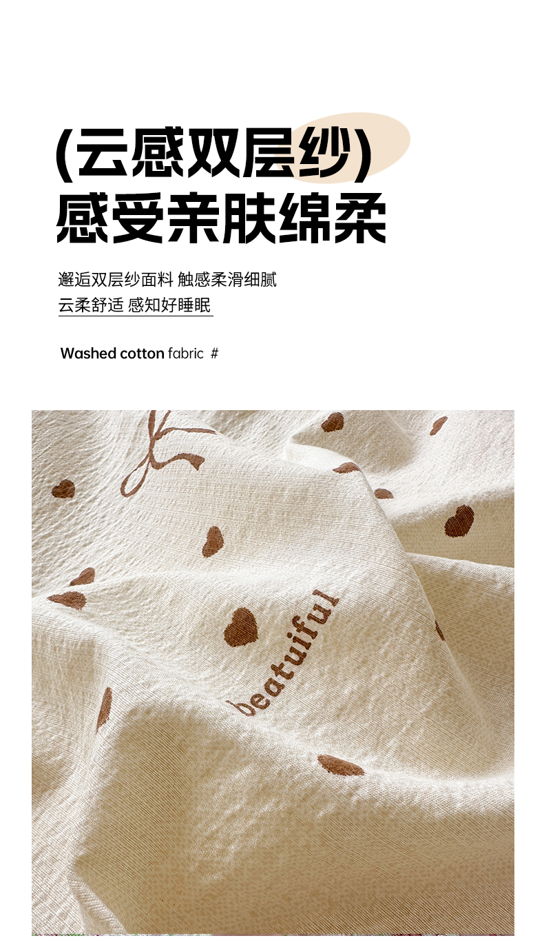 当前位置: 91家纺网 > 商品网购 > 床品套件 > 四件套 > 其它四件套 > 壹和 2026新款A类云感花边款双层纱床盖款和床单款四件套单床盖单被套 焦糖爱心