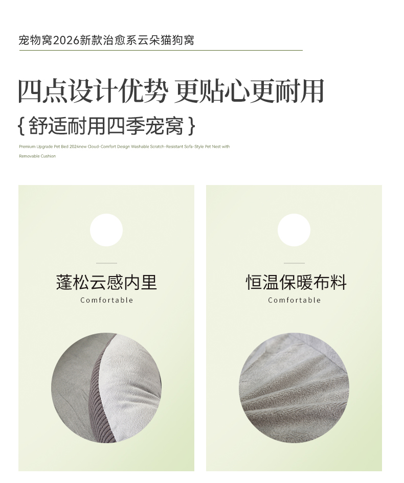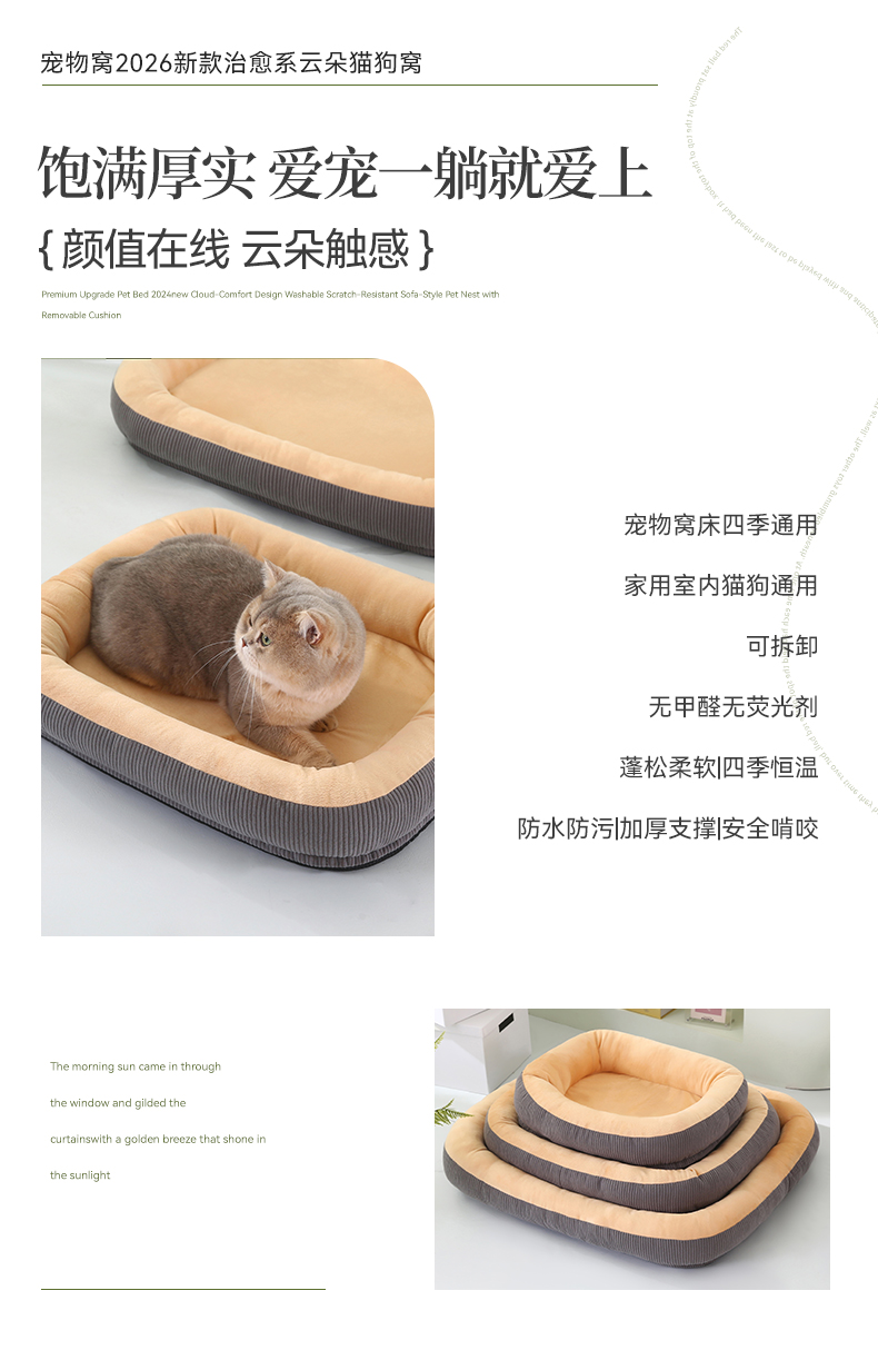 商品名称:永光家居 2026新款灯芯绒宠物窝底座可拆卸猫窝狗窝四季通用猫咪用品狗狗用品 组合图仅供展示-不可下单 50x60cm