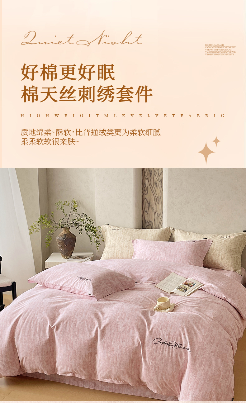 当前位置: 91家纺网 > 商品网购 > 床品套件 > 四件套 > 其它四件套 > 春皖家纺 2026春夏新款天丝棉刺绣四件套 樱绮丝