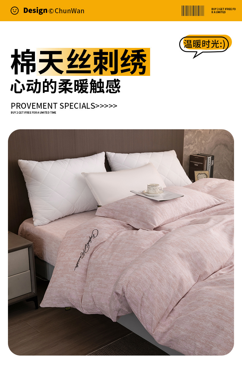 (总)春皖家纺 2026春夏新款天丝棉刺绣四件套,宝绮蓝,亮绮黄,曼妮-贝壳色,曼妮-绿萝纱,曼妮-云褐色,曼妮-紫,苔绮绿,钛绮灰,樱绮丝