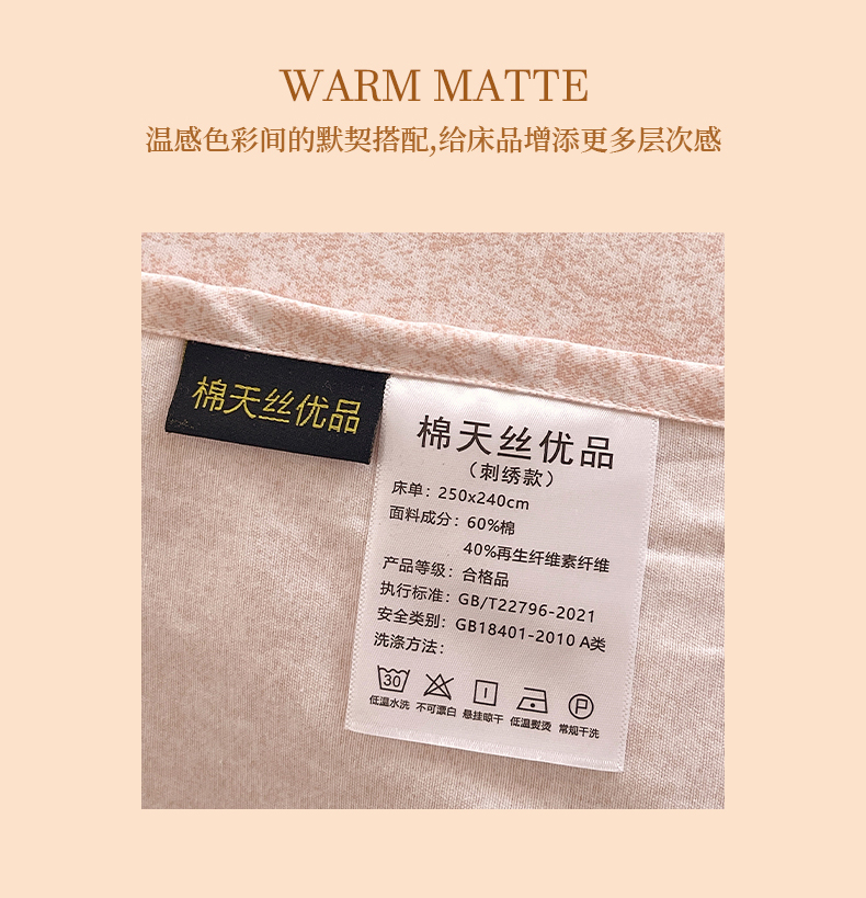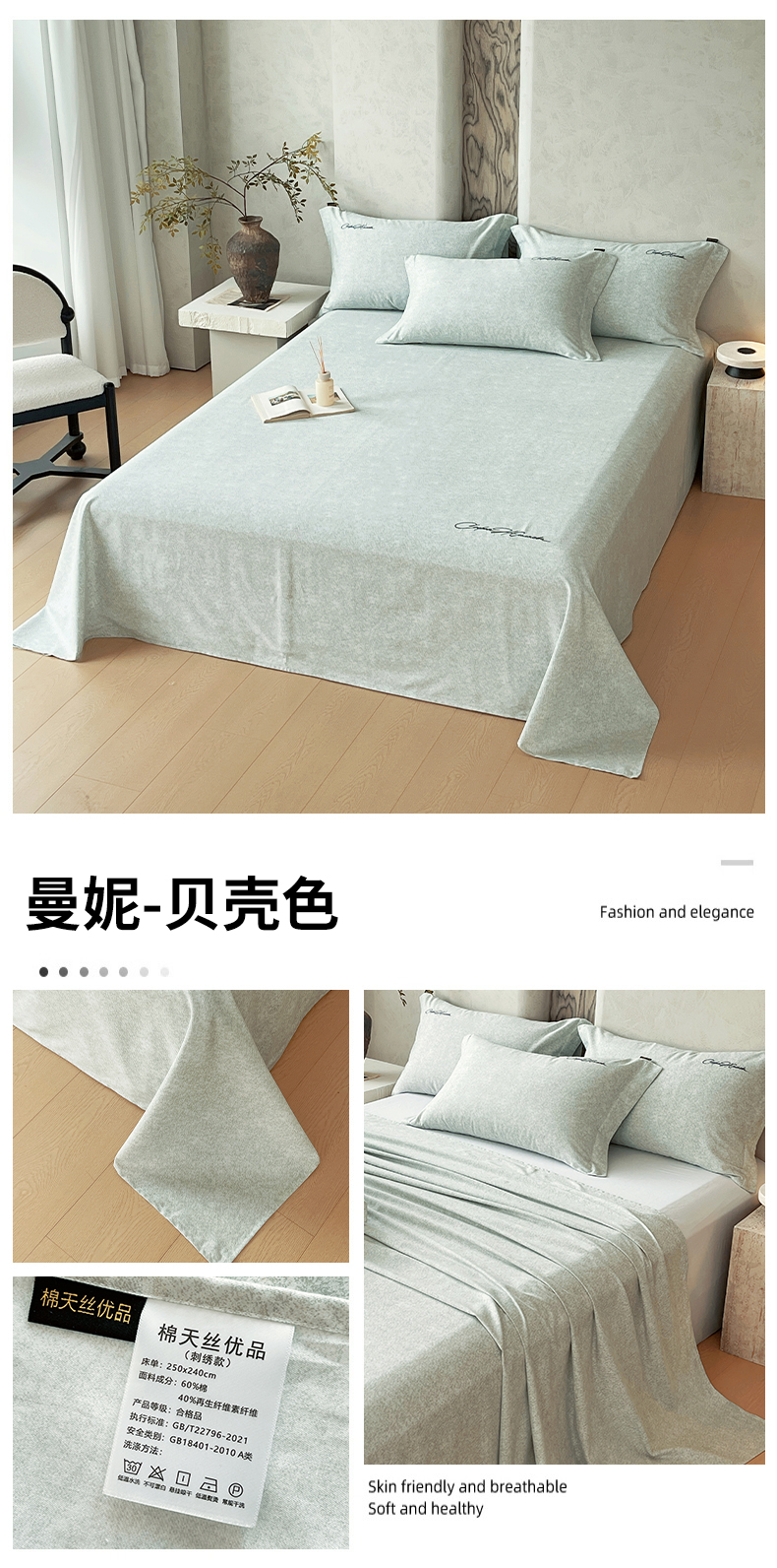 商品名称:春皖家纺 2026春夏新款天丝棉刺绣单床单 床单单件 曼妮-贝壳色