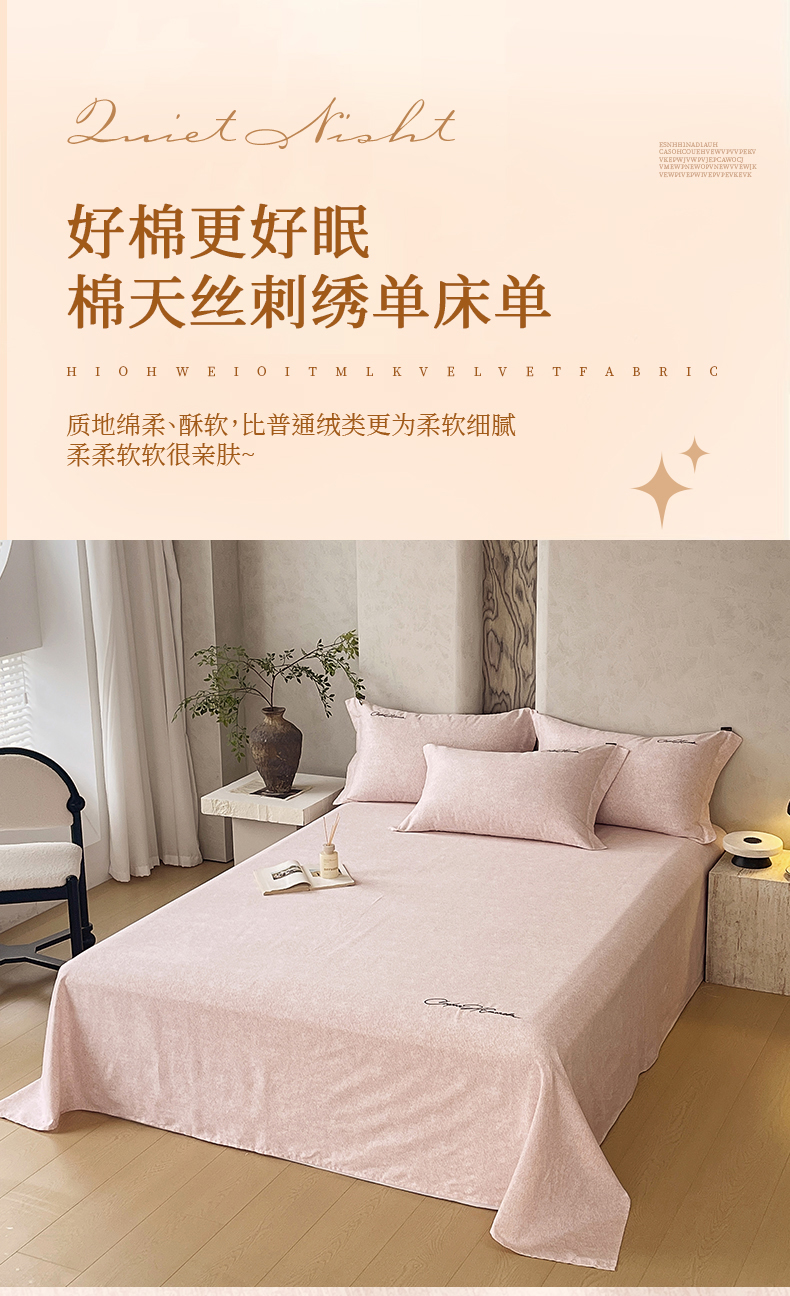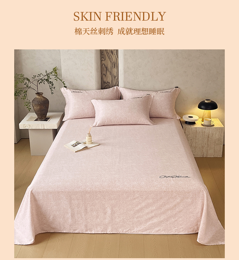 春皖家纺 2026春夏新款天丝棉刺绣单床单 床单单件 曼妮-贝壳色