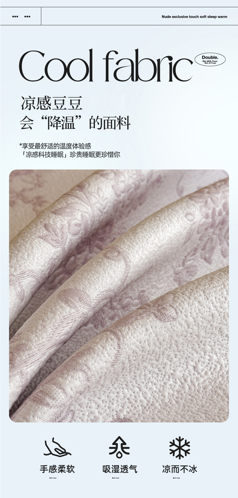 商品名称:莱家富 2026新款A类母婴级法式风冰豆豆凉席夏天冰丝席夏季可机洗家用软席床裙款 思琳娜-冰粉