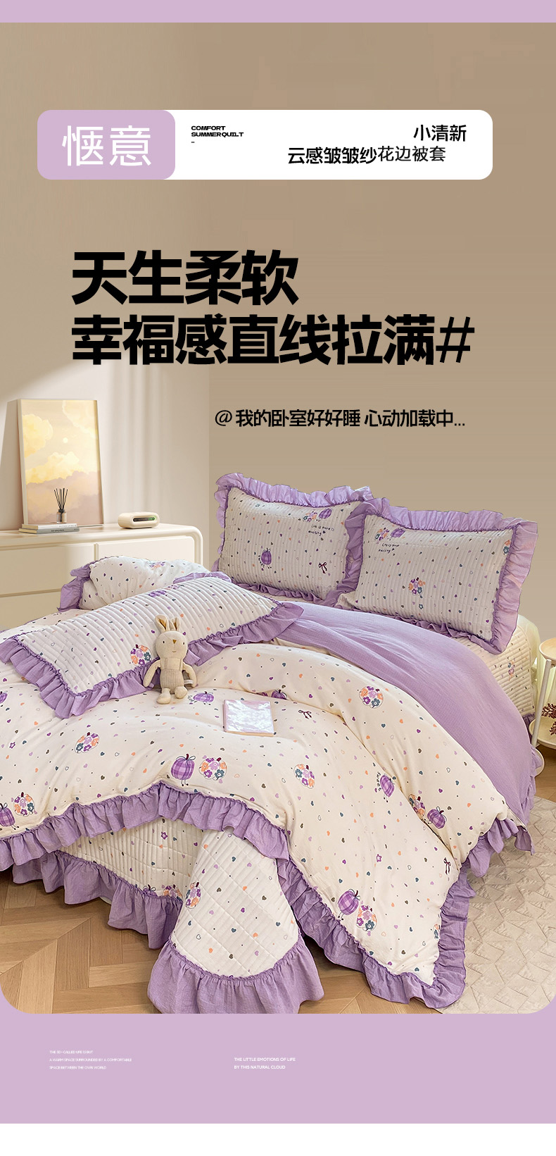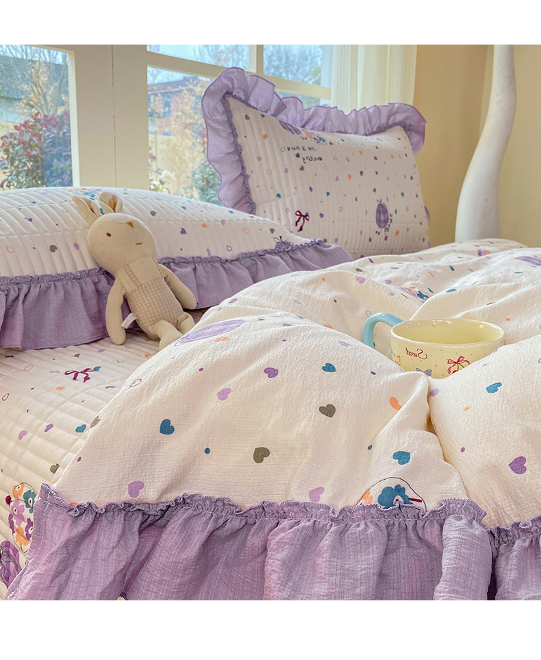 商品名称:眠势力 2026新款韩版双层纱花边被套云感皱皱纱被罩带花边 紫芋南瓜