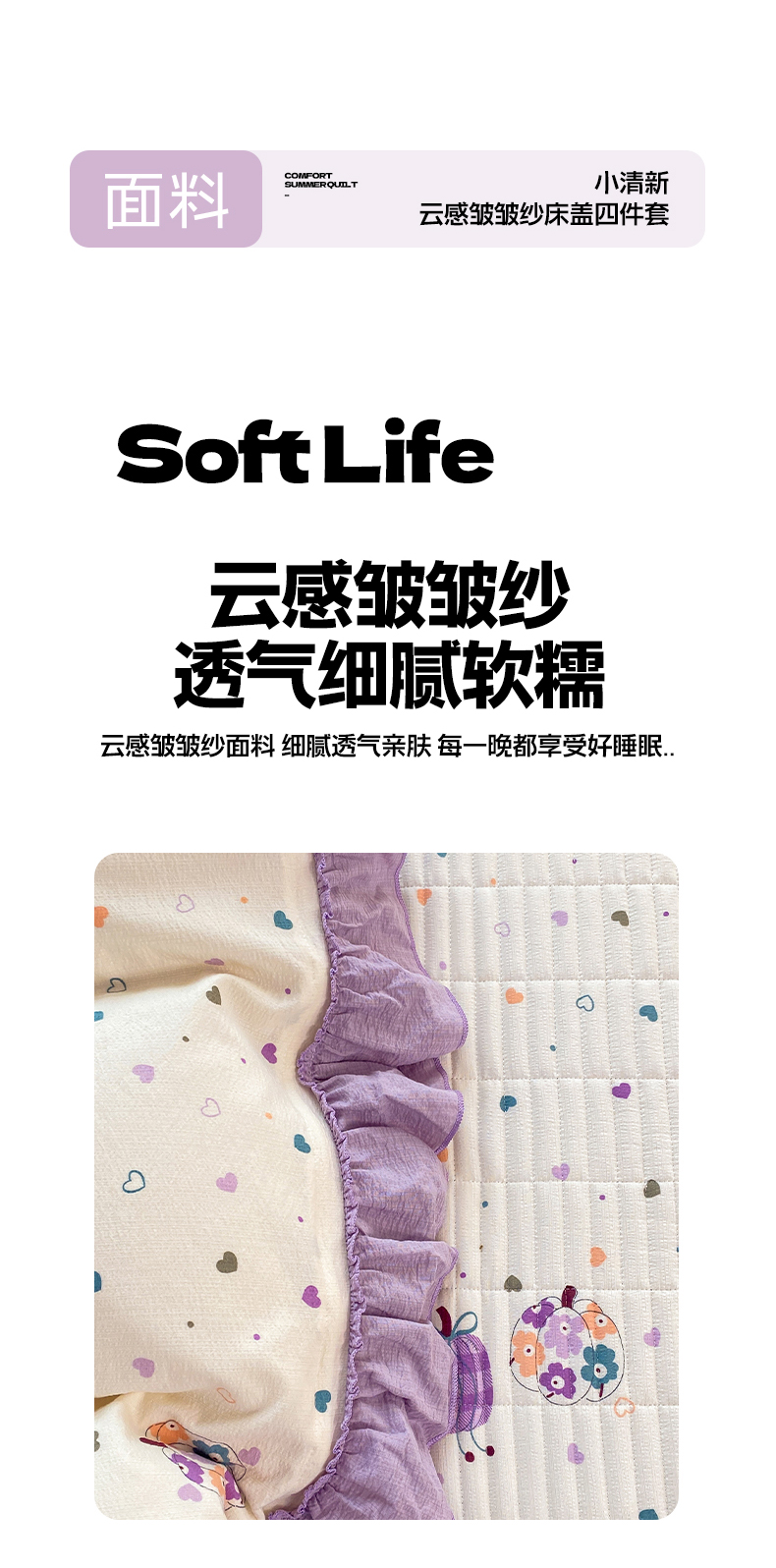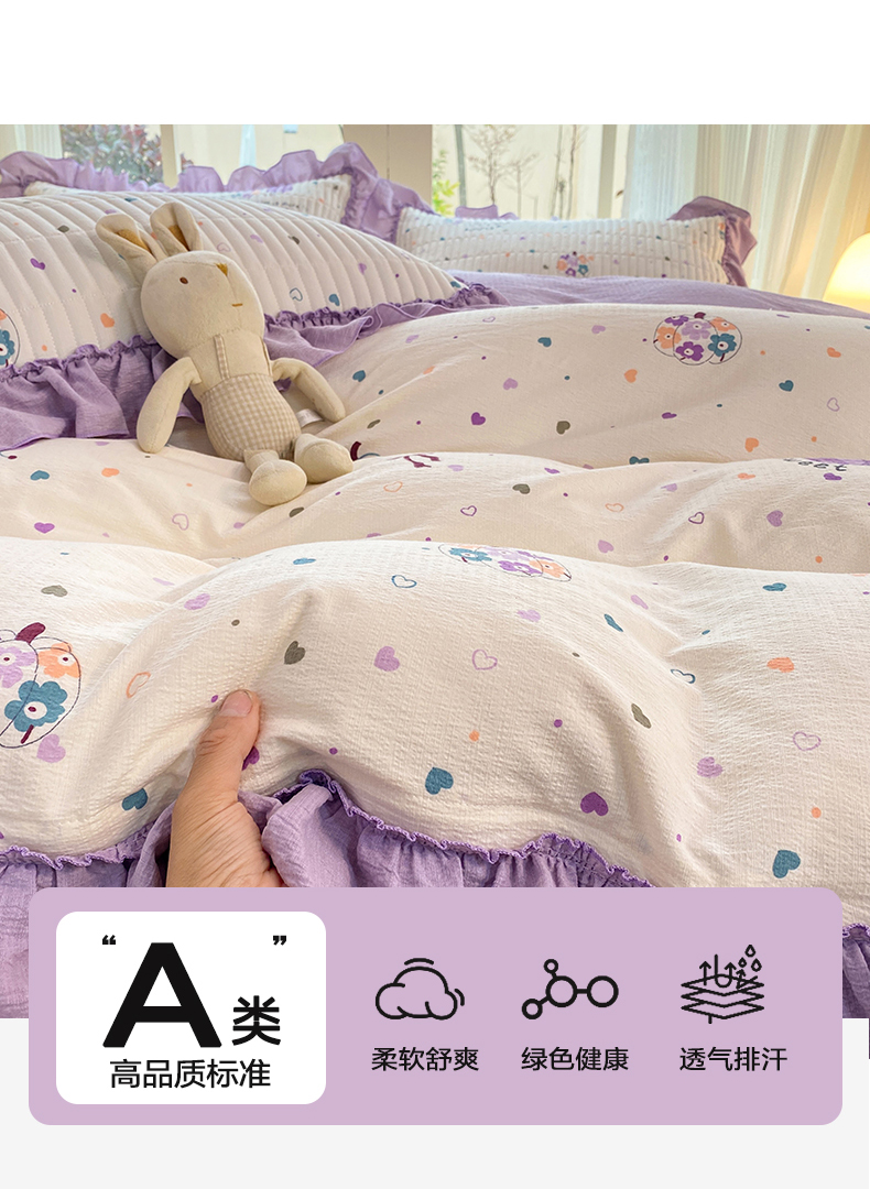 (总)眠势力 2026新款云感皱皱纱床盖四件套,紫雾花汀,缤纷彩结,彩色心情,草莓蝴蝶结,春野织梦,哈喽猫咪,海盐奶猫,花漾草莓,金蝶逐影,萌兔乐园,青樱兔语,向云端,星梦甜心,幸运小马,紫芋南瓜