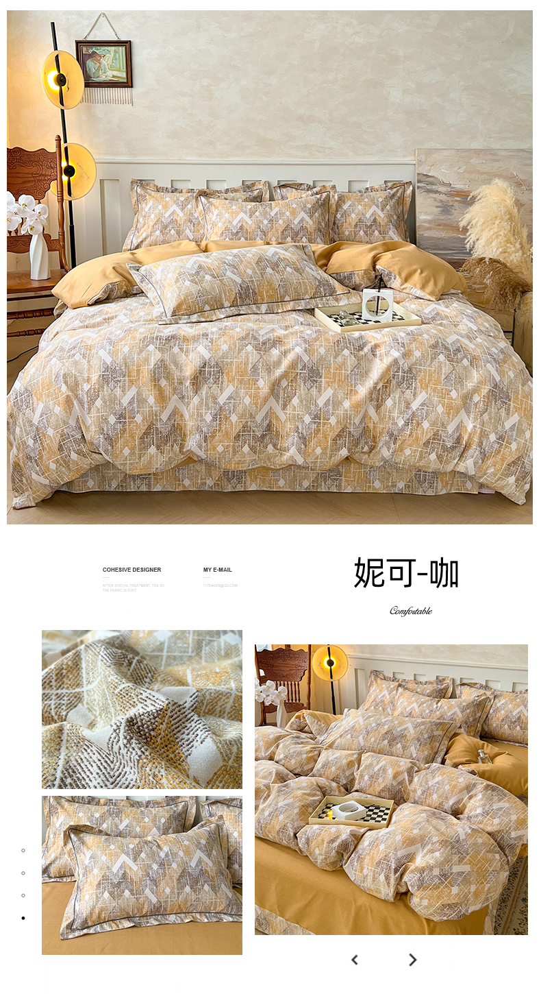 当前位置: 91家纺网 > 商品网购 > 床品套件 > 四件套 > 简约 2025新款全棉四件套活性生态磨毛四件套 妮可-咖