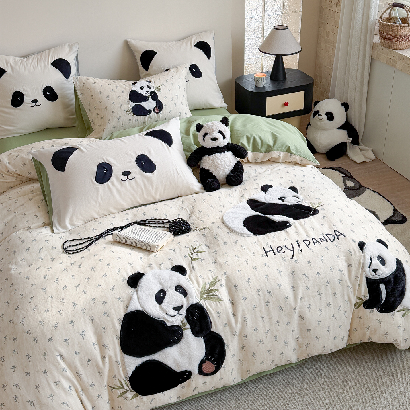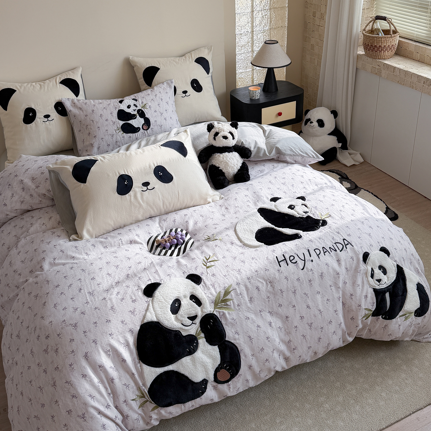 当前位置: 91家纺网 > 商品网购 > 床品套件 > 四件套 > 全棉普通四件套 > 丽涵家纺 2026新款全棉纯棉双层纱印花贴布绣四件套-熊猫一家 熊猫一家-灰