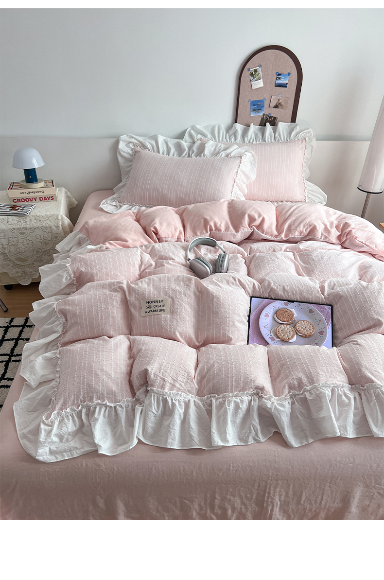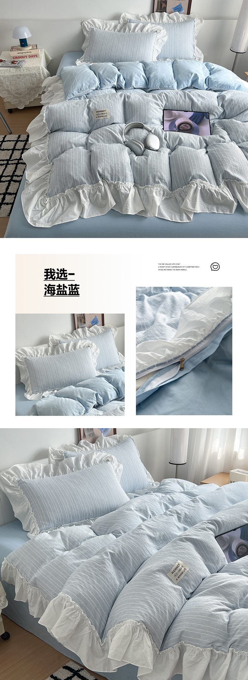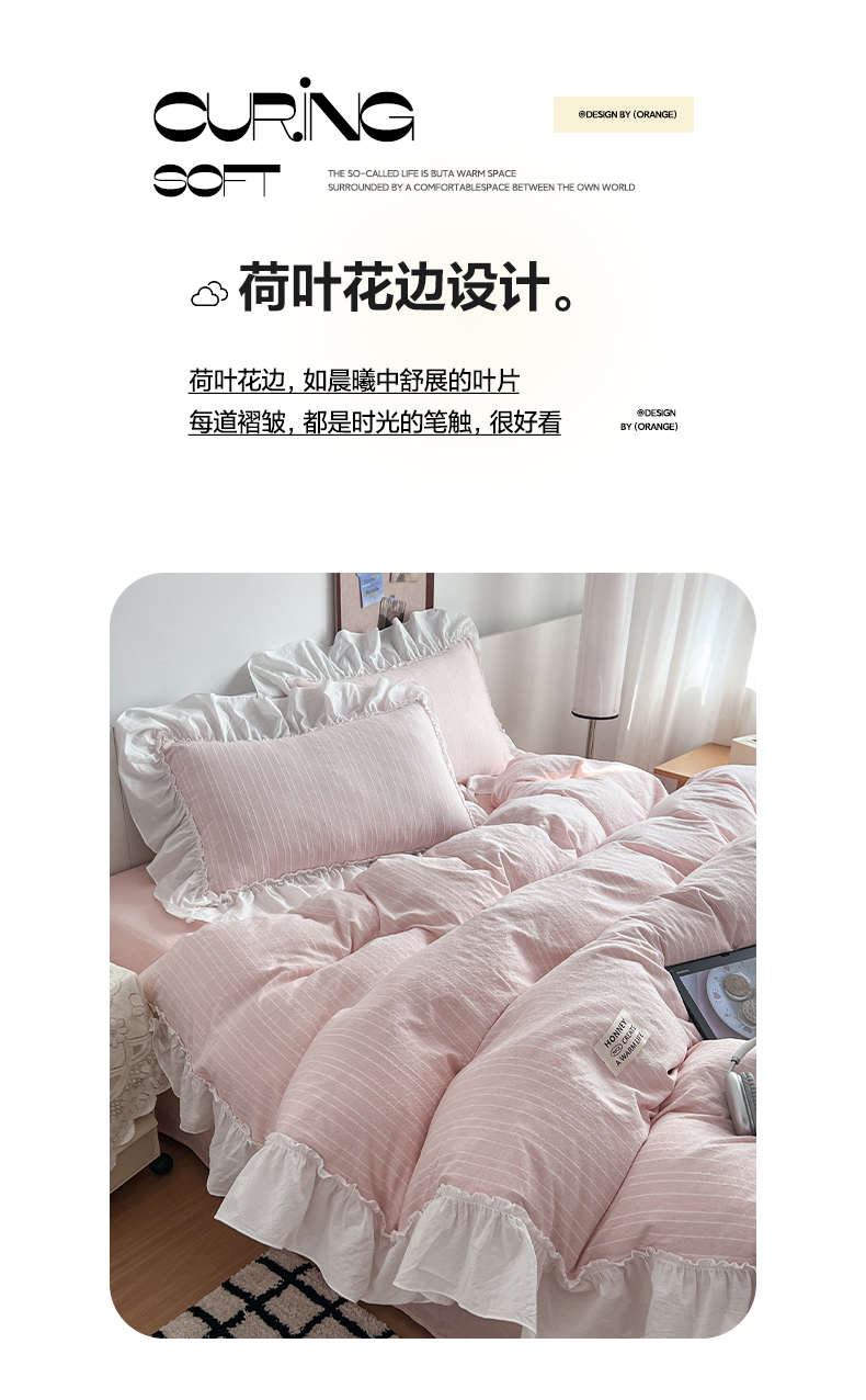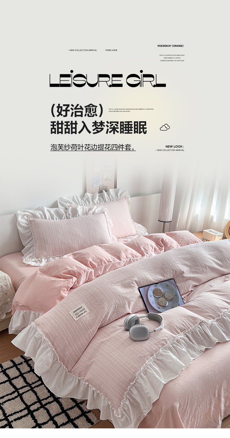当前位置: 91家纺网 > 商品网购 > 床品套件 > 四件套 > 化纤普通四件套 > 晨曦家纺 2026新款荷叶花边泡芙纱提花四件套可水洗棉四件套少女风 蜜桃奶芙