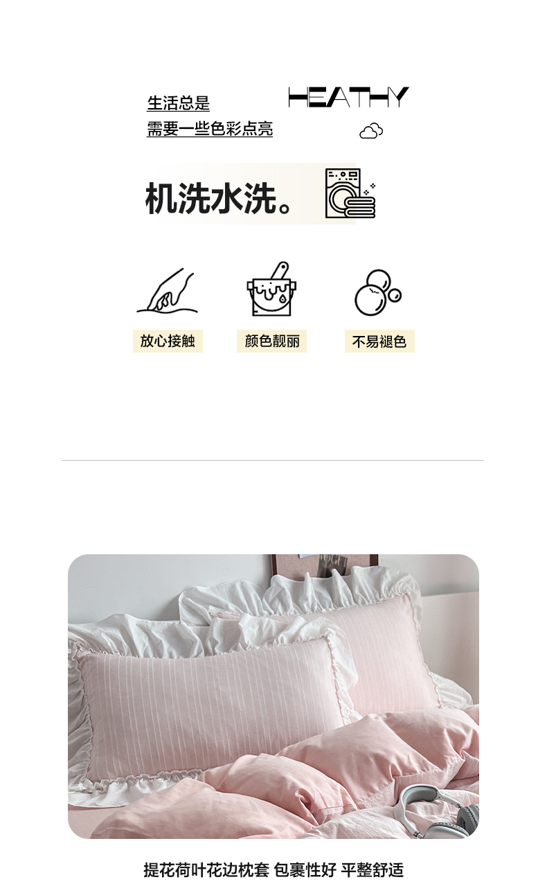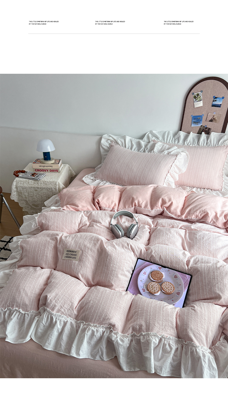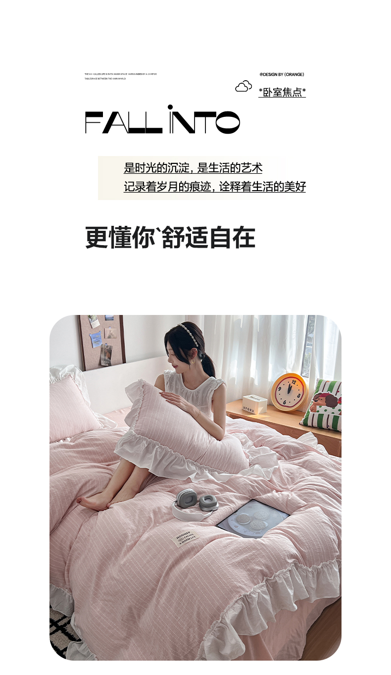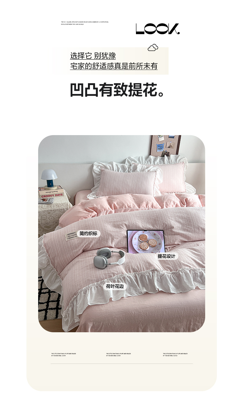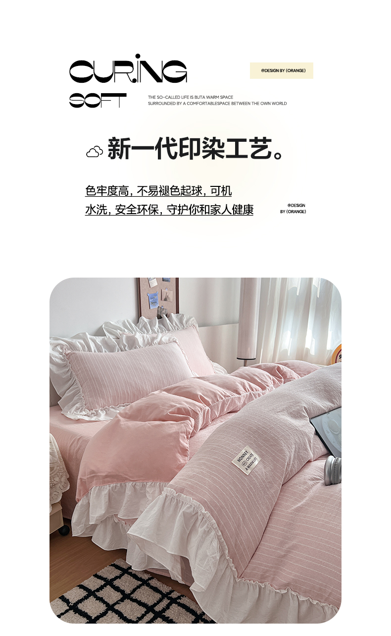 当前位置: 91家纺网 > 商品网购 > 床品套件 > 四件套 > 化纤普通四件套 > 晨曦家纺 2026新款荷叶花边泡芙纱提花四件套可水洗棉四件套少女风 蜜桃奶芙