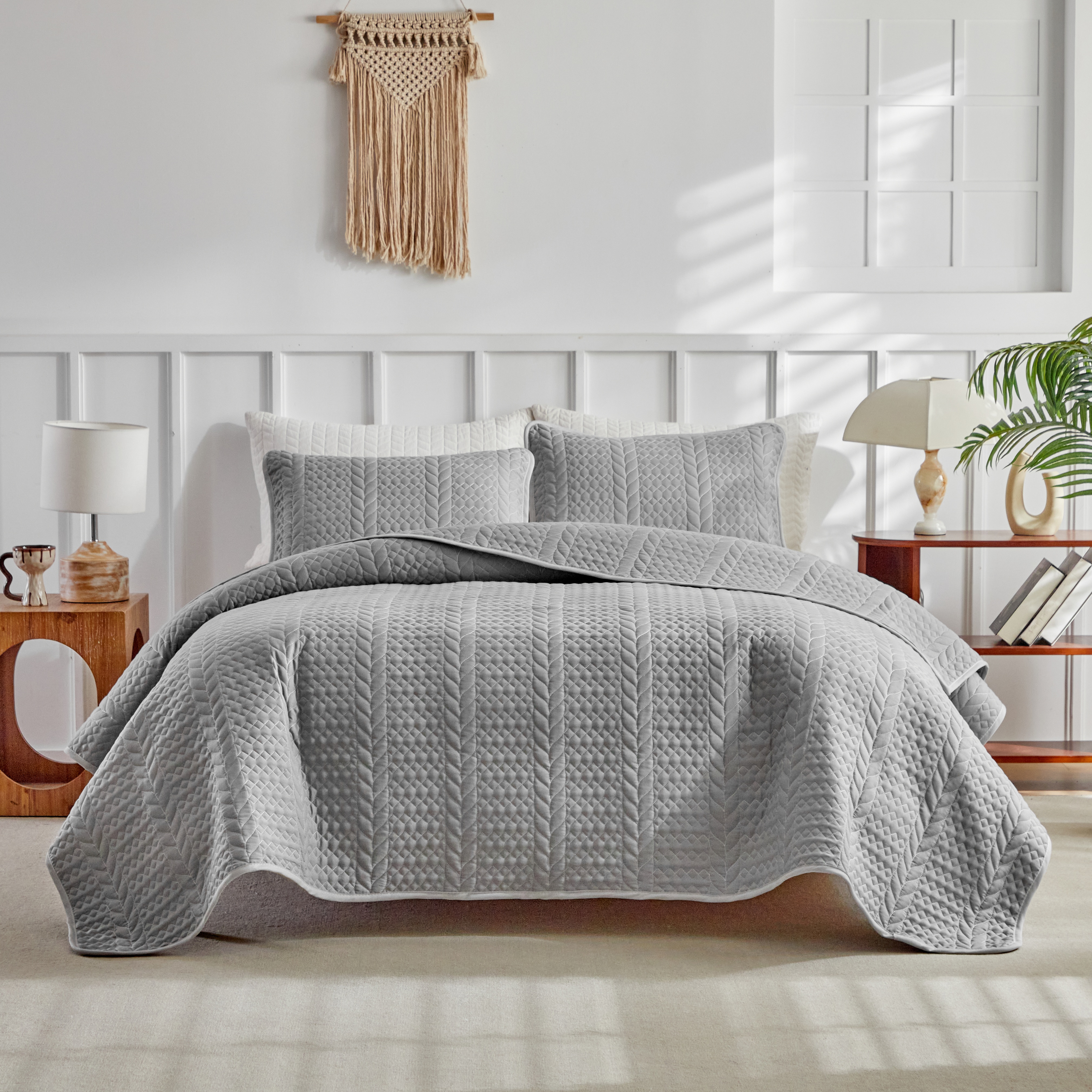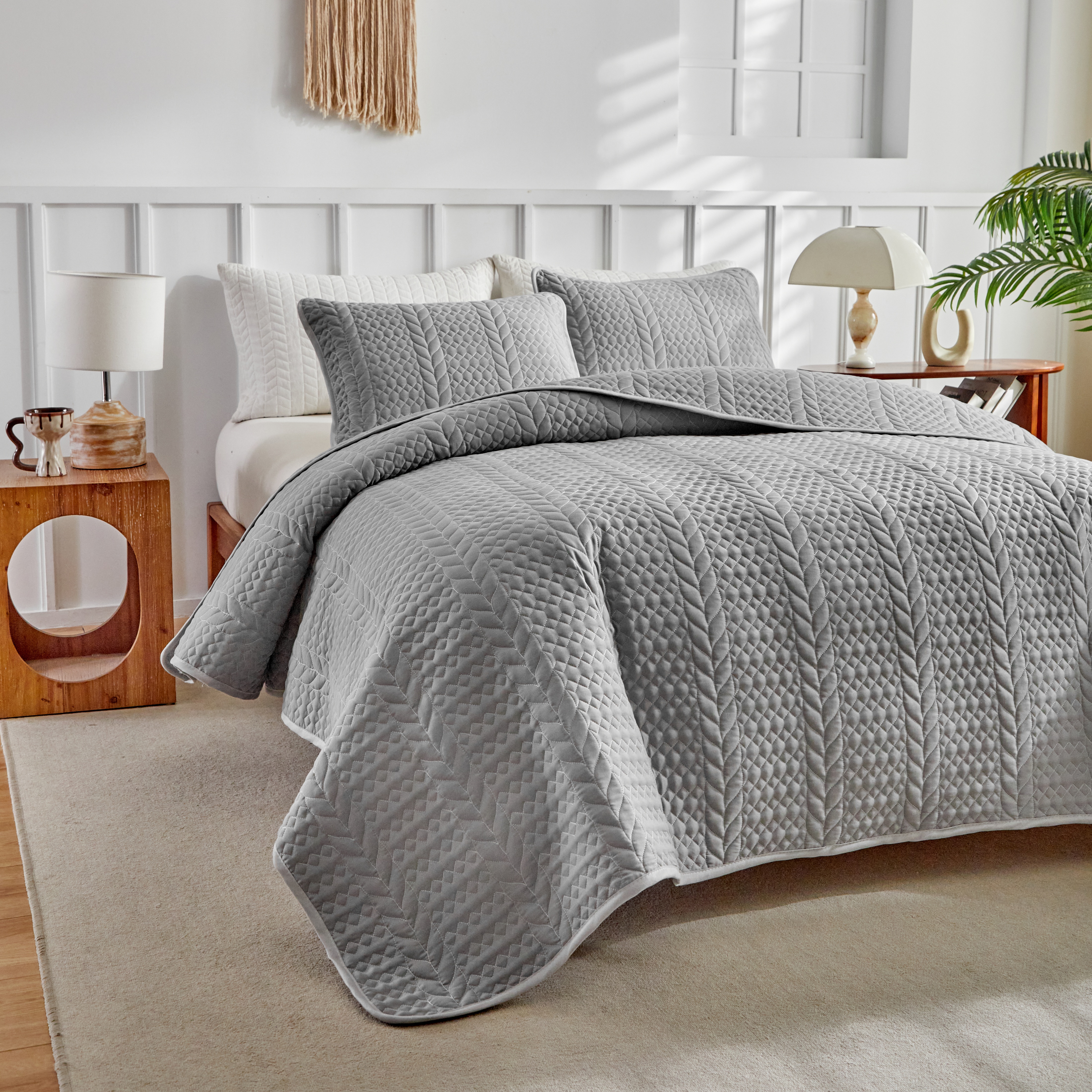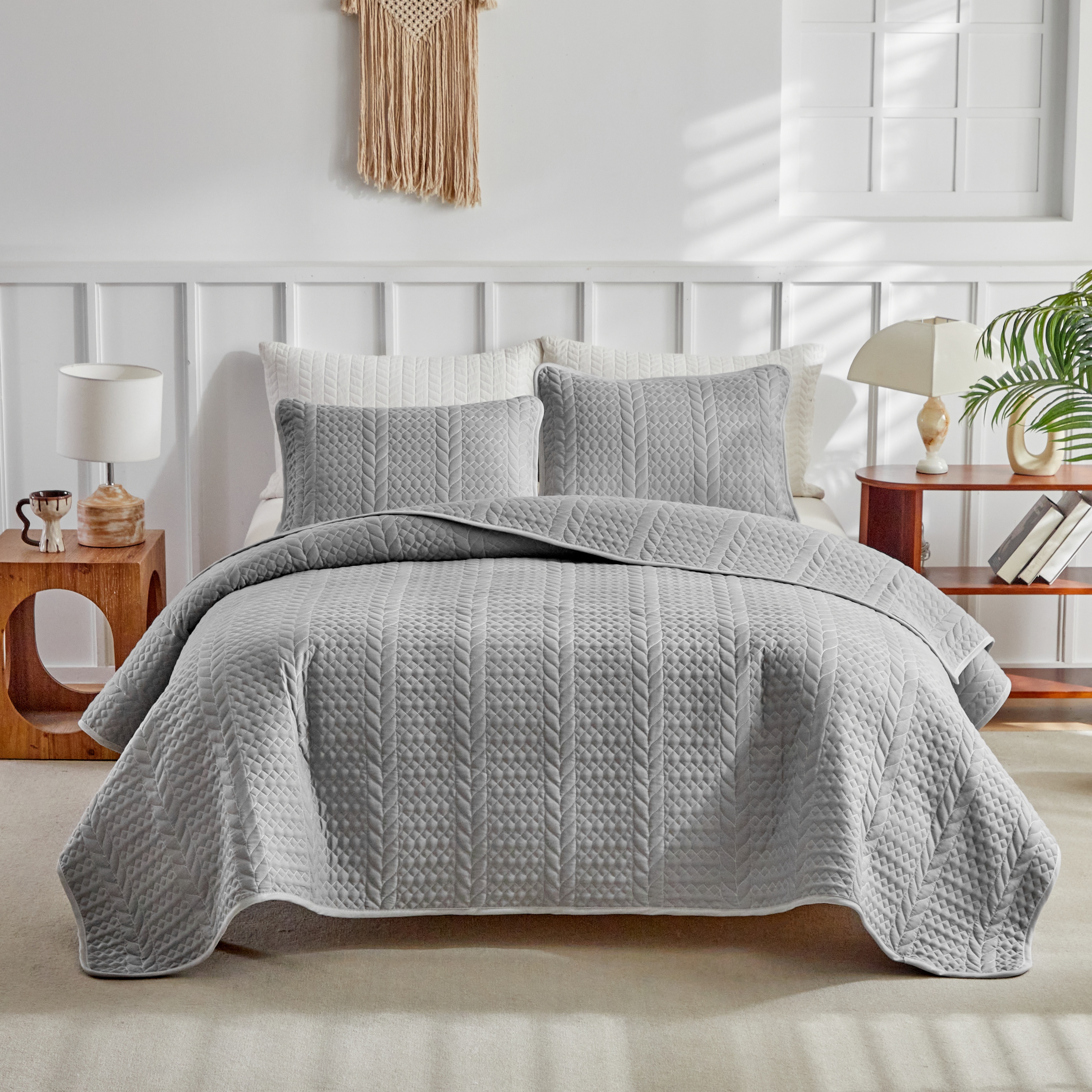 (总)温宁 2026年素色床盖三件套 国外薄被第一批--方糖 跨境,外贸,亚马逊,shein,temu,方糖-灰色,方糖-绿色,方糖-米色