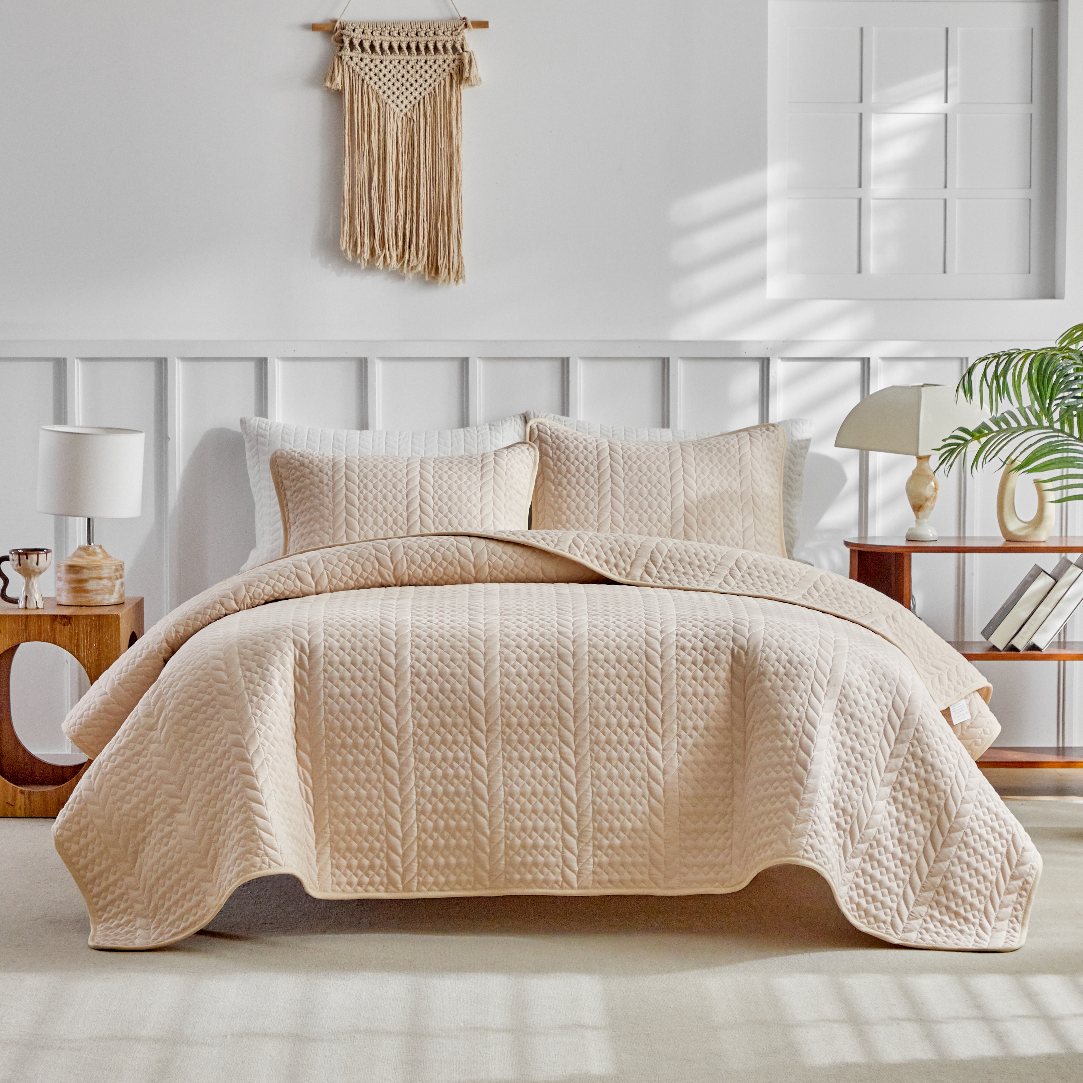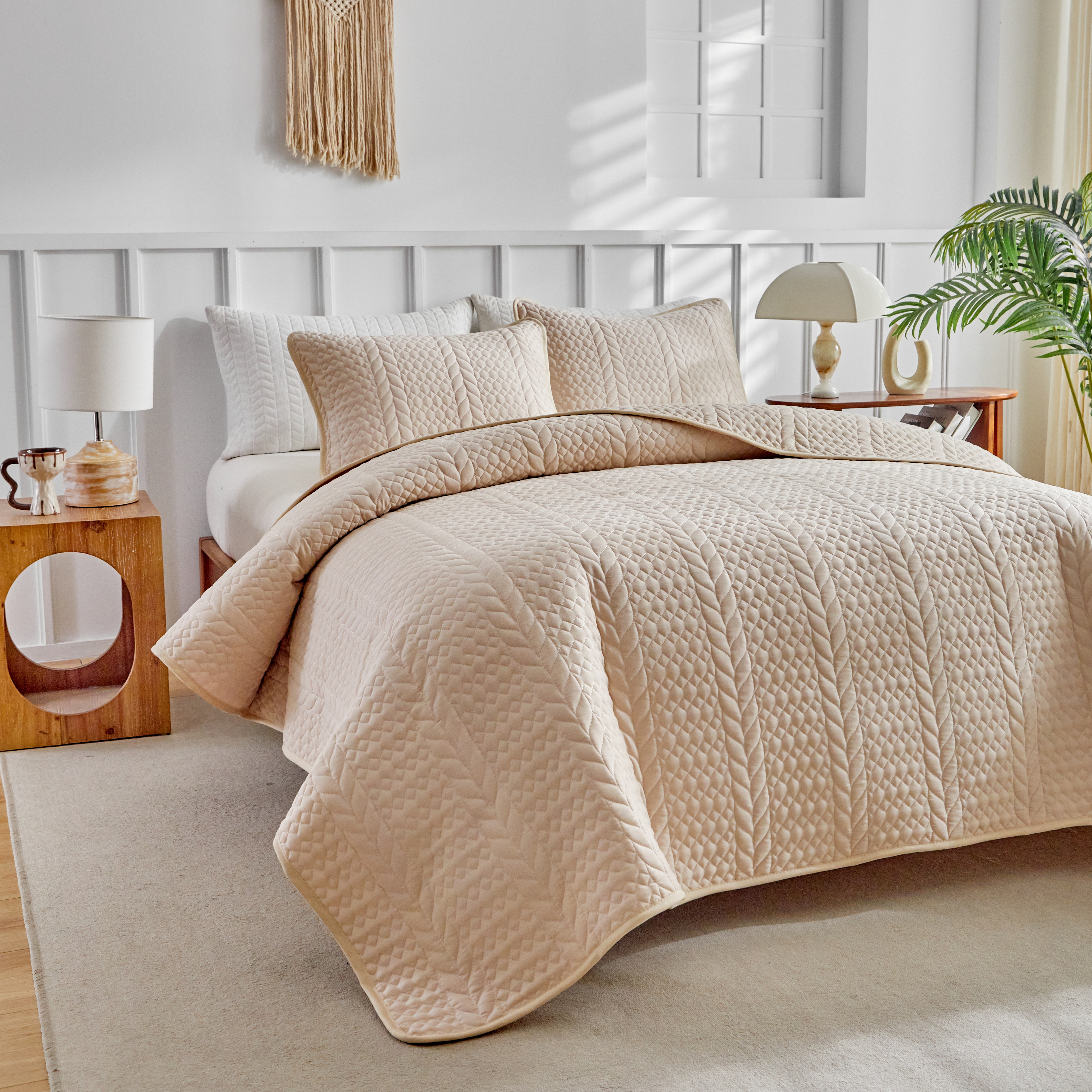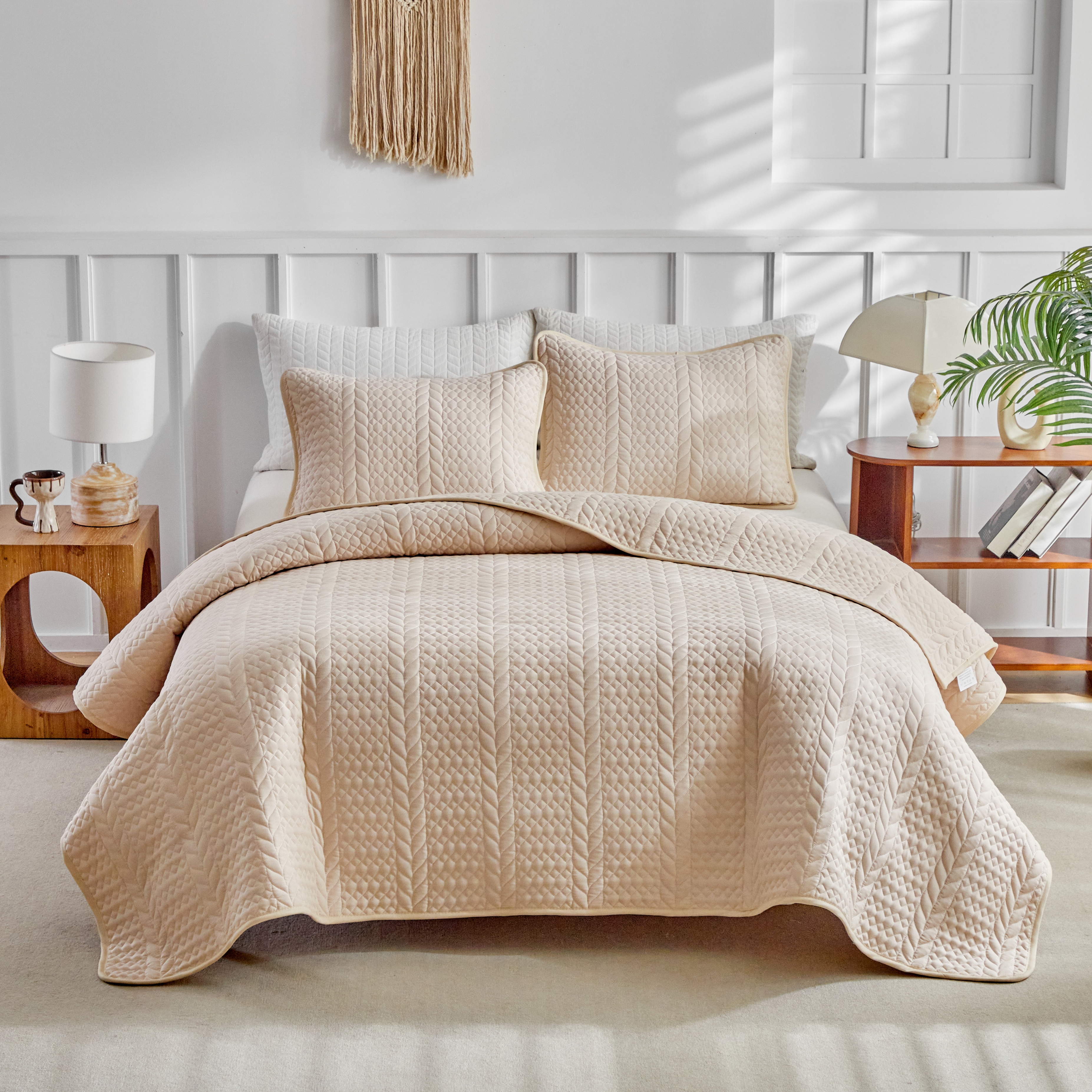 (总)温宁 2026年素色床盖三件套 国外薄被第一批--方糖 跨境,外贸,亚马逊,shein,temu,方糖-灰色,方糖-绿色,方糖-米色