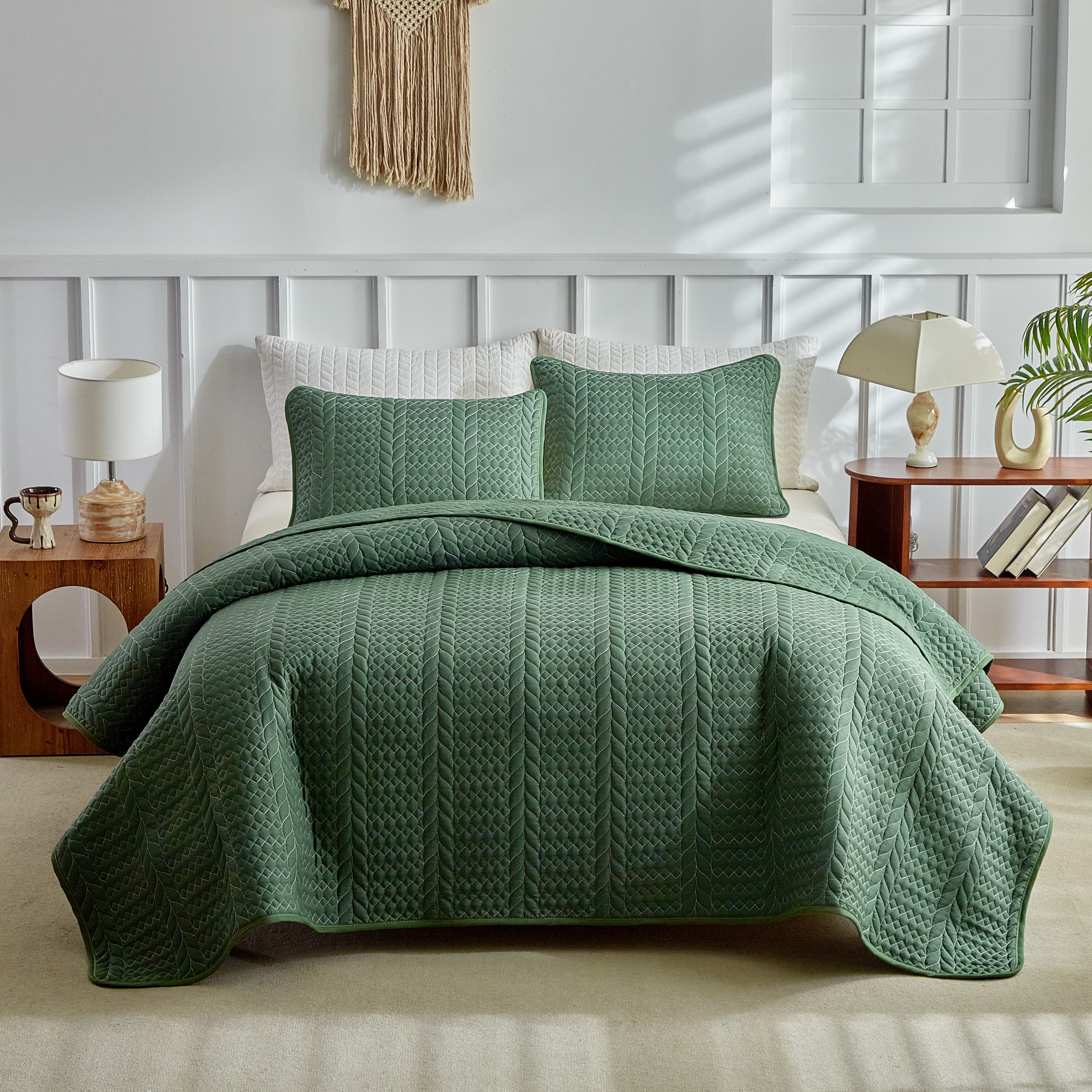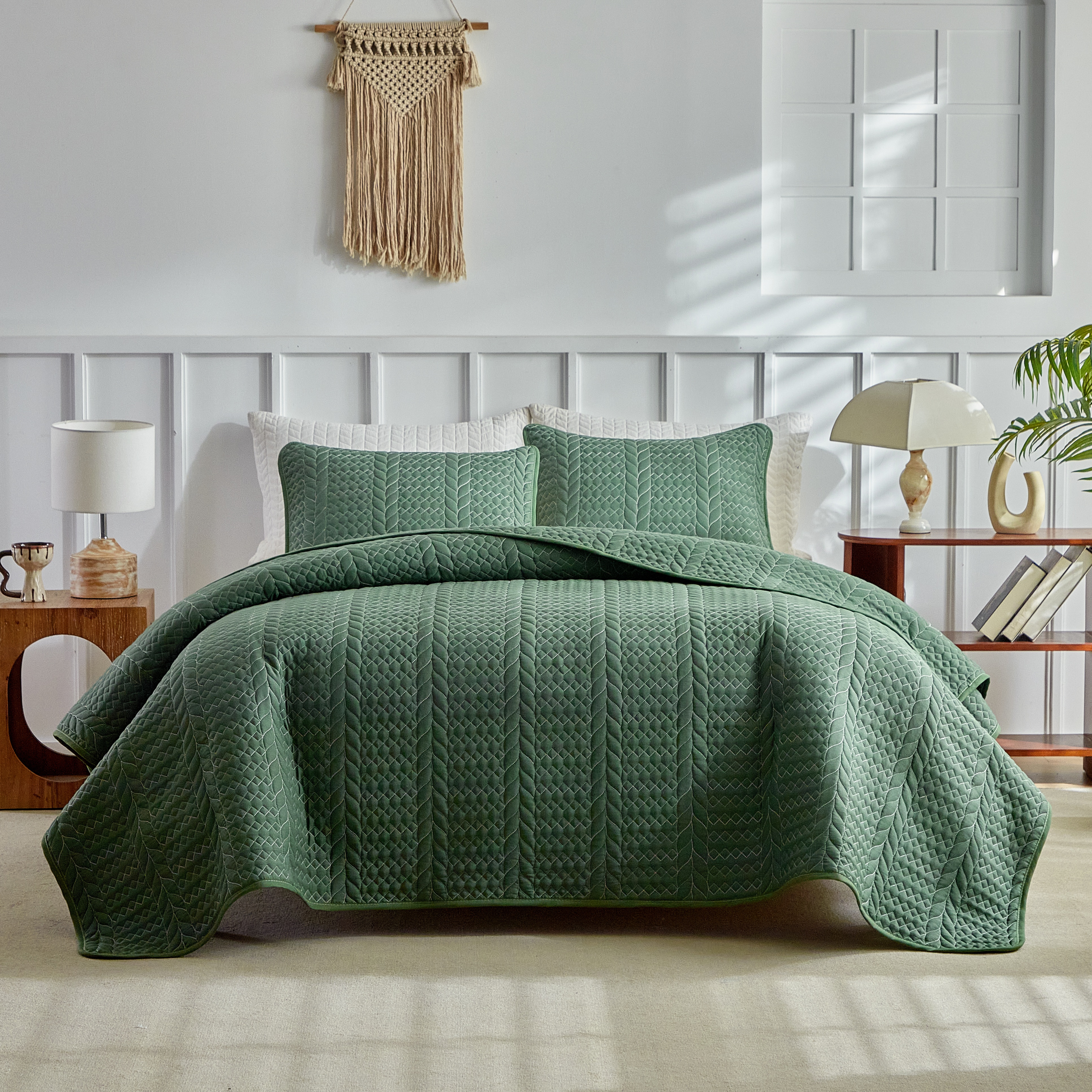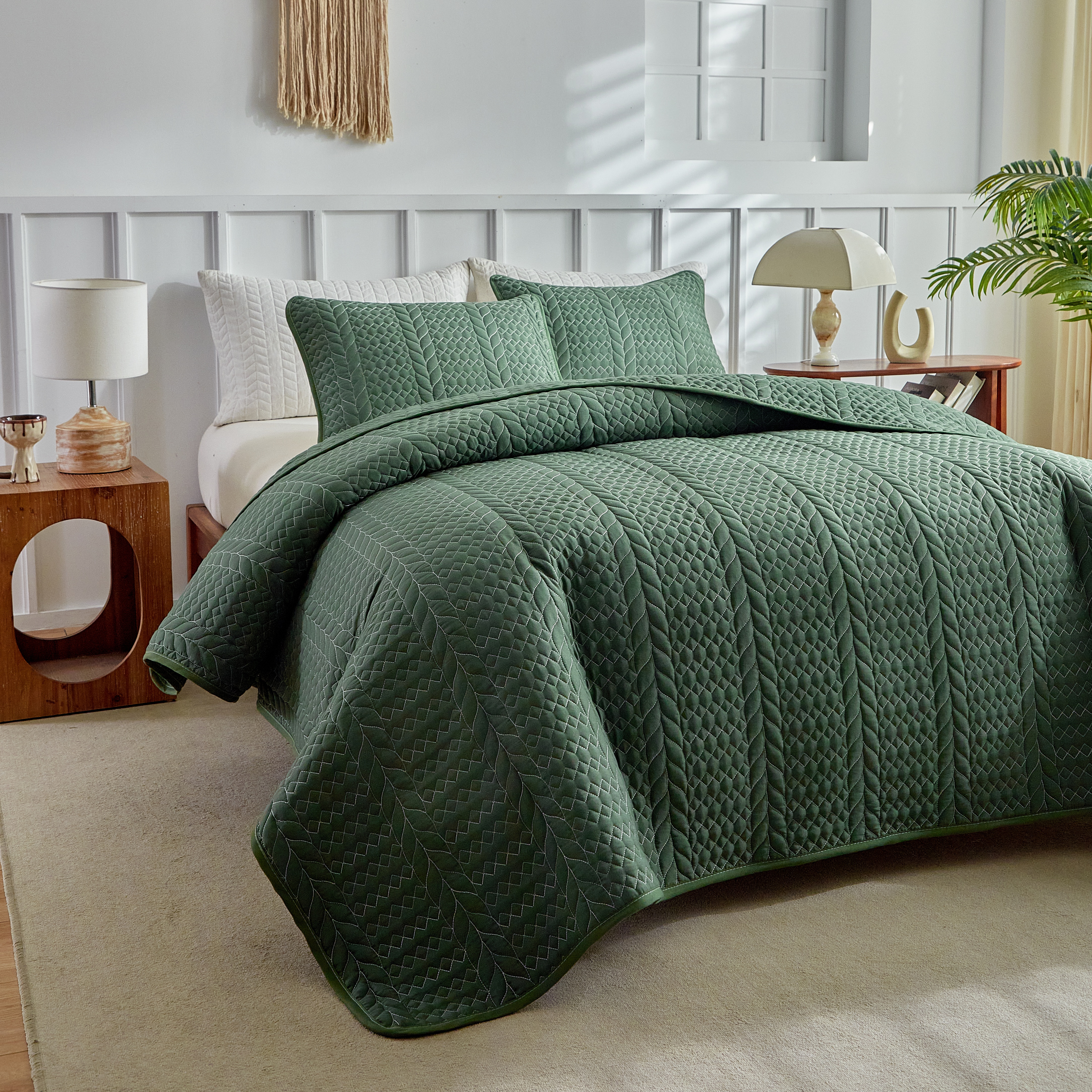 (总)温宁2025新款跨境外贸专供斜方格床盖,绿色,米色,银灰