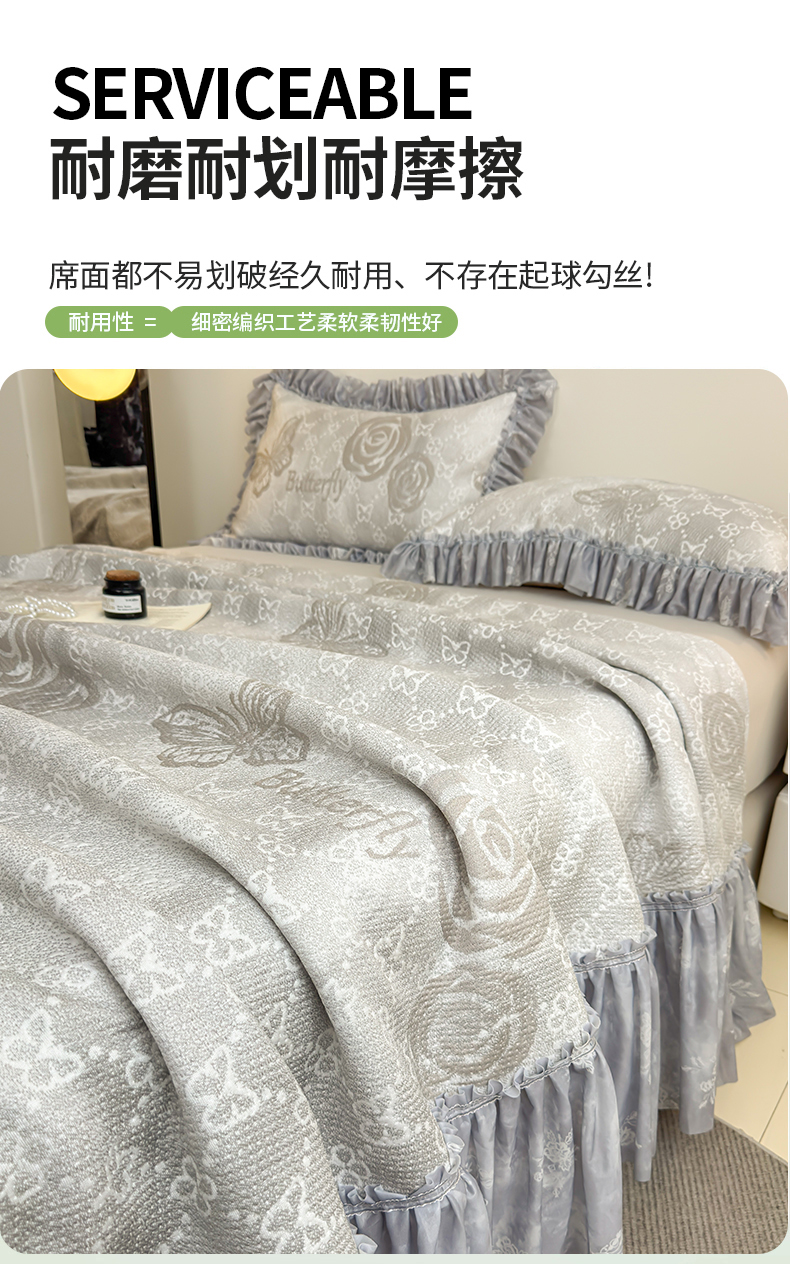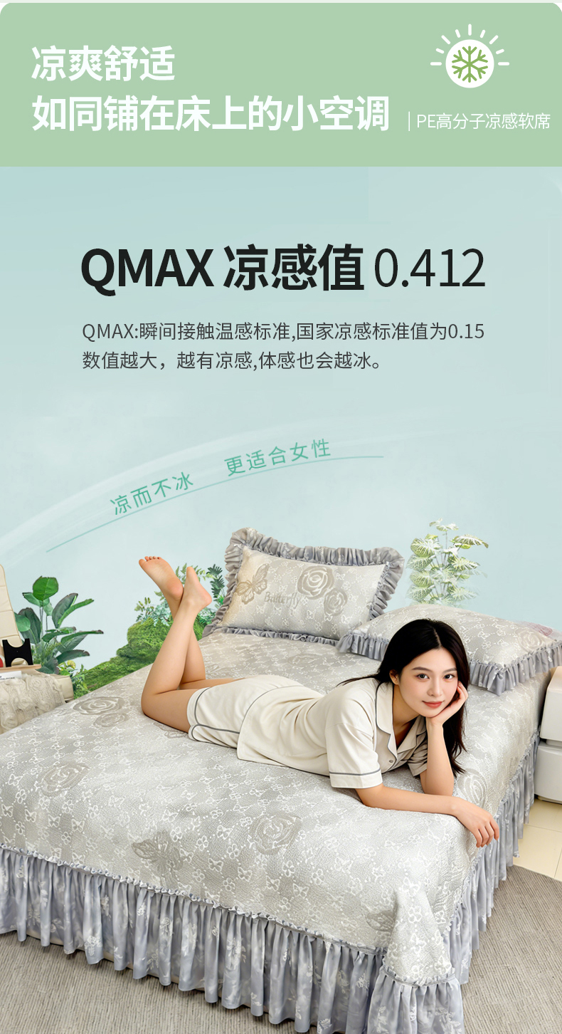 锦逸家居 2026新款床裙款真PE冰丝凉席 花香丽影-浅灰