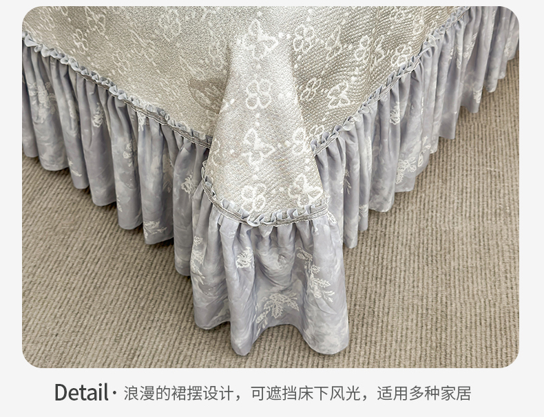 商品名称:锦逸家居 2026新款床裙款真PE冰丝凉席 花香丽影-浅灰