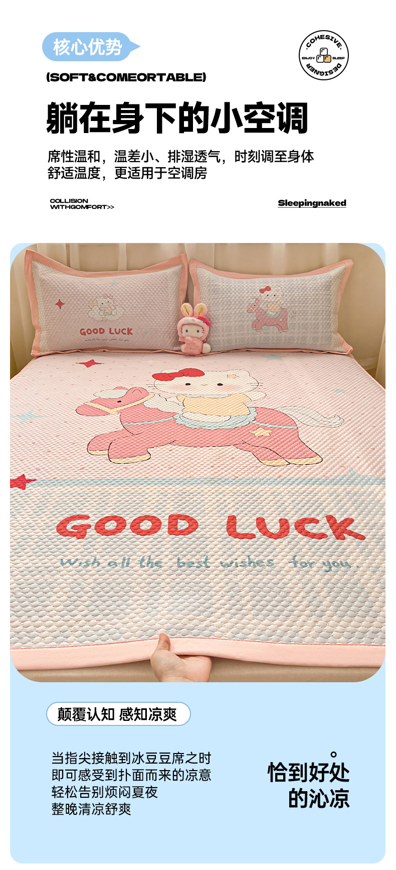 (总)蓝极人 2026新款大版数码印花豆豆席,好朋友,星星木马,苹果狗,甜乐汪,木马KT,甜茶崽,美好时光