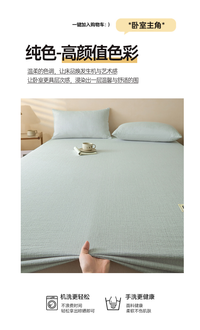 • 91家纺网 家纺一手货源 找家纺 (总)蓝极人 2026新款提花色织水洗麻床笠,CL抹茶绿,CL晨曦黄,CL湖水蓝,CL玫瑰粉,CL葡萄青,CL烟灰,LC牛仔蓝