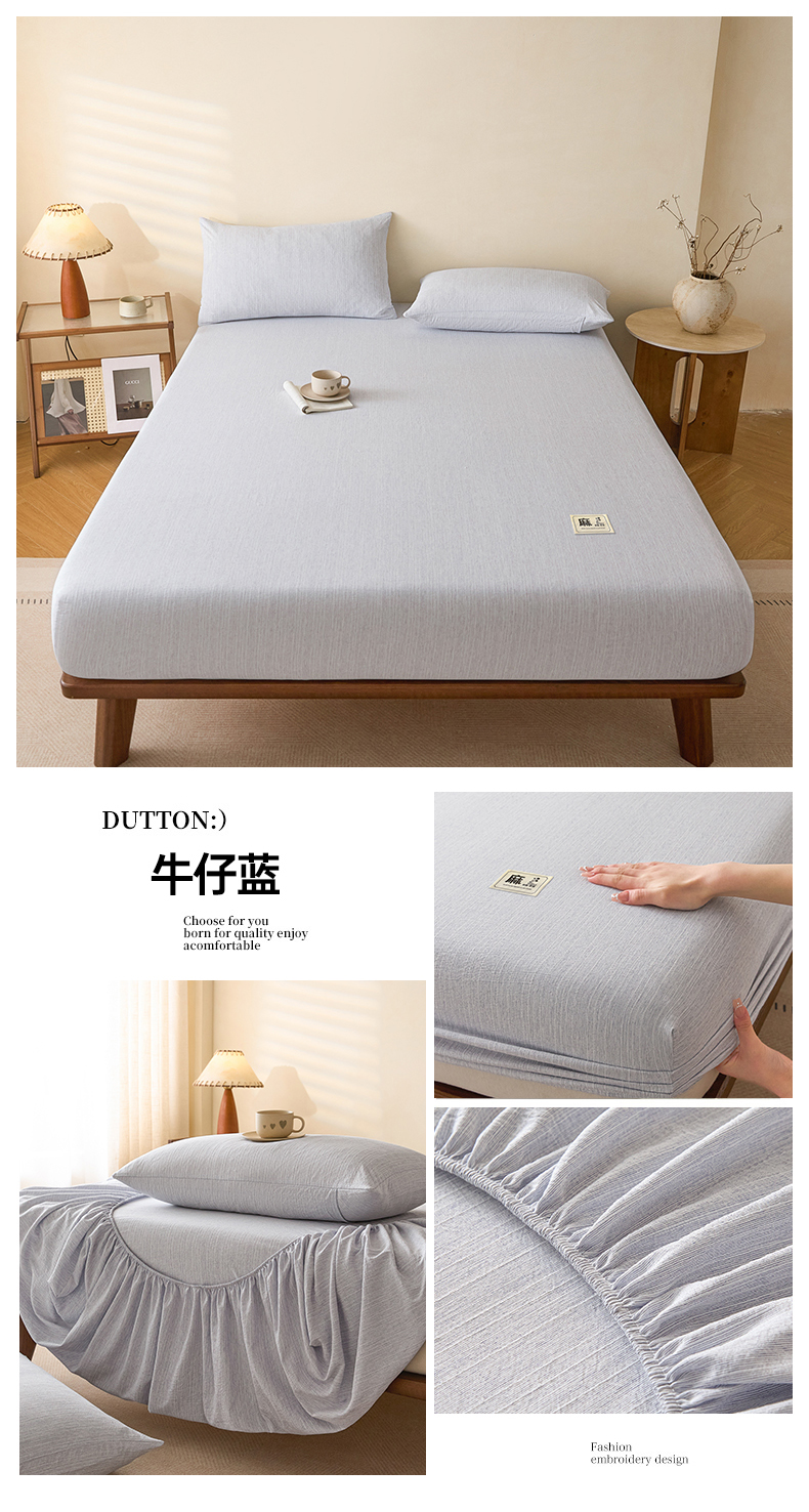 蓝极人 2026新款提花色织水洗麻床笠 LC牛仔蓝