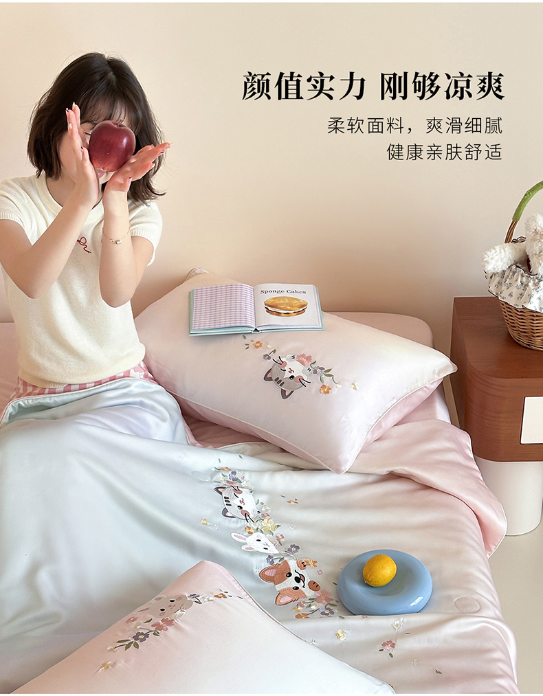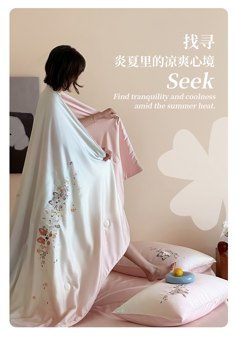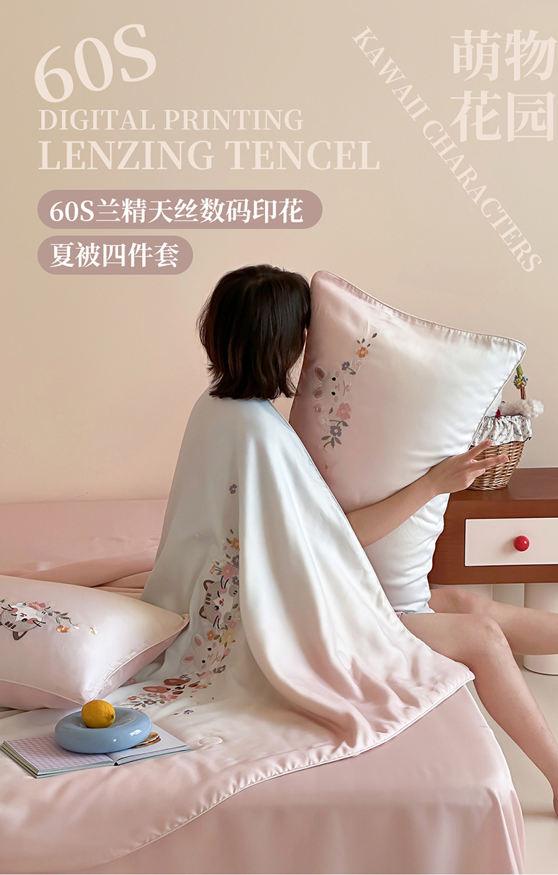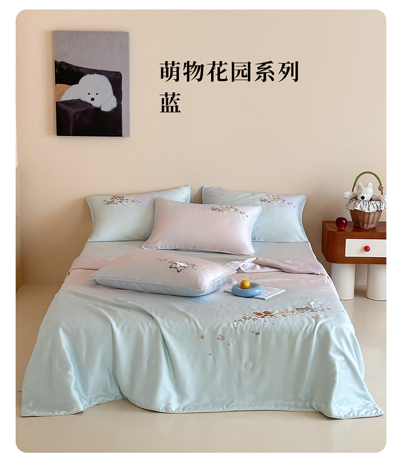 • 91家纺网 家纺一手货源 找家纺 (总)爱缦 2026新款60s兰精天丝数码印花绣花夏被空调被夏凉被,萌物花园-粉,萌物花园-蓝