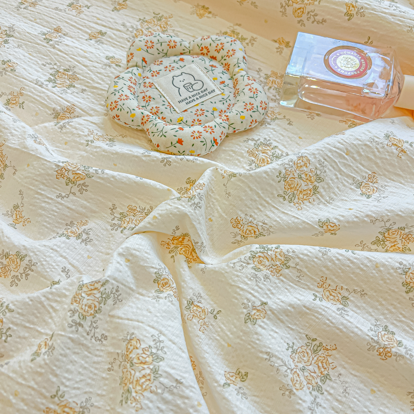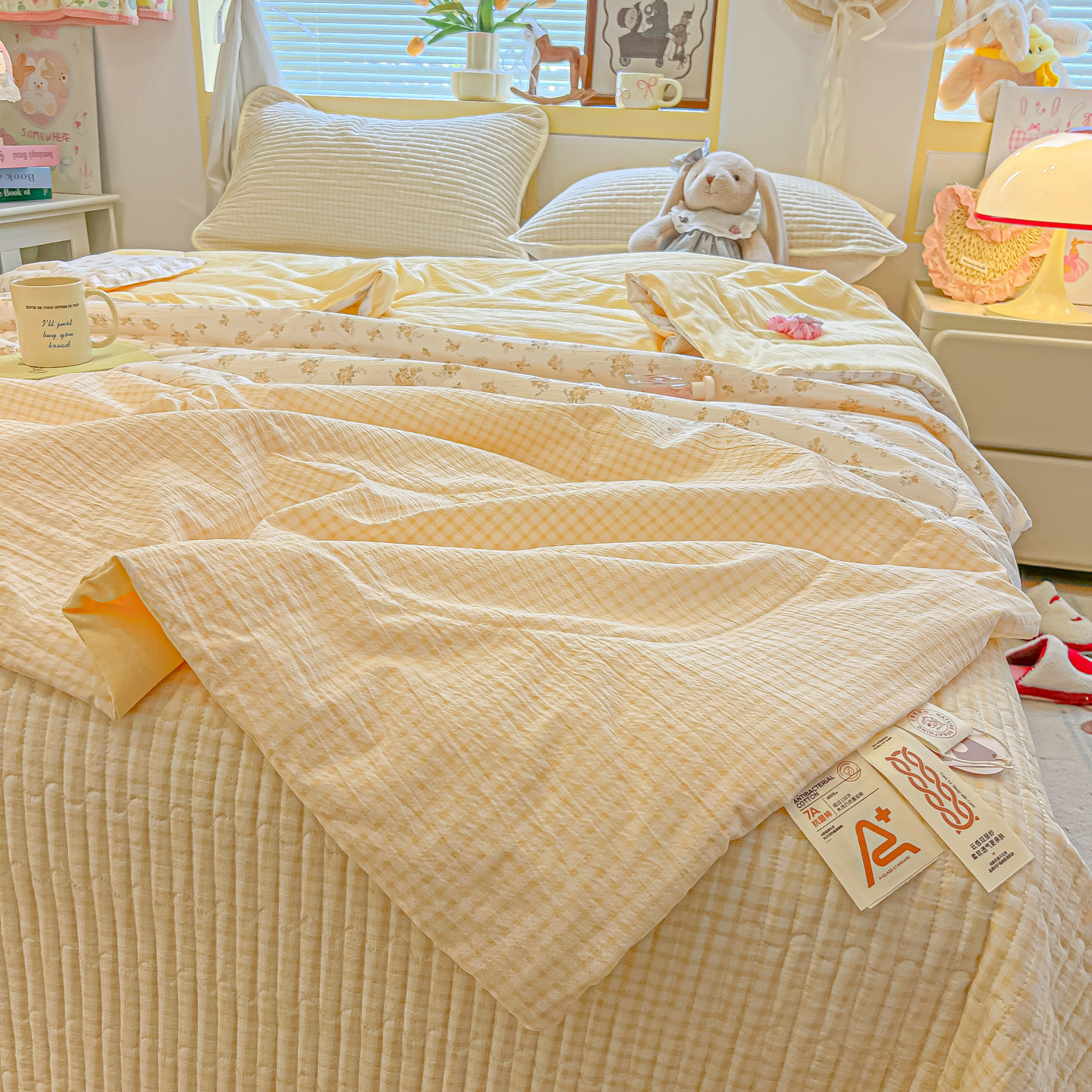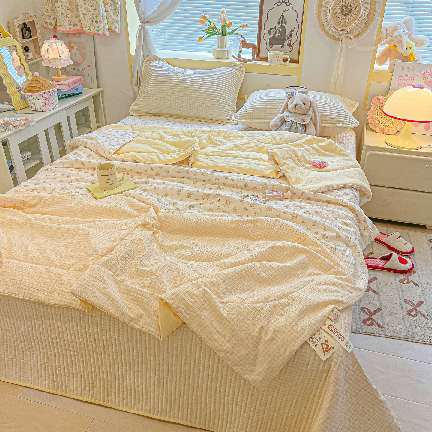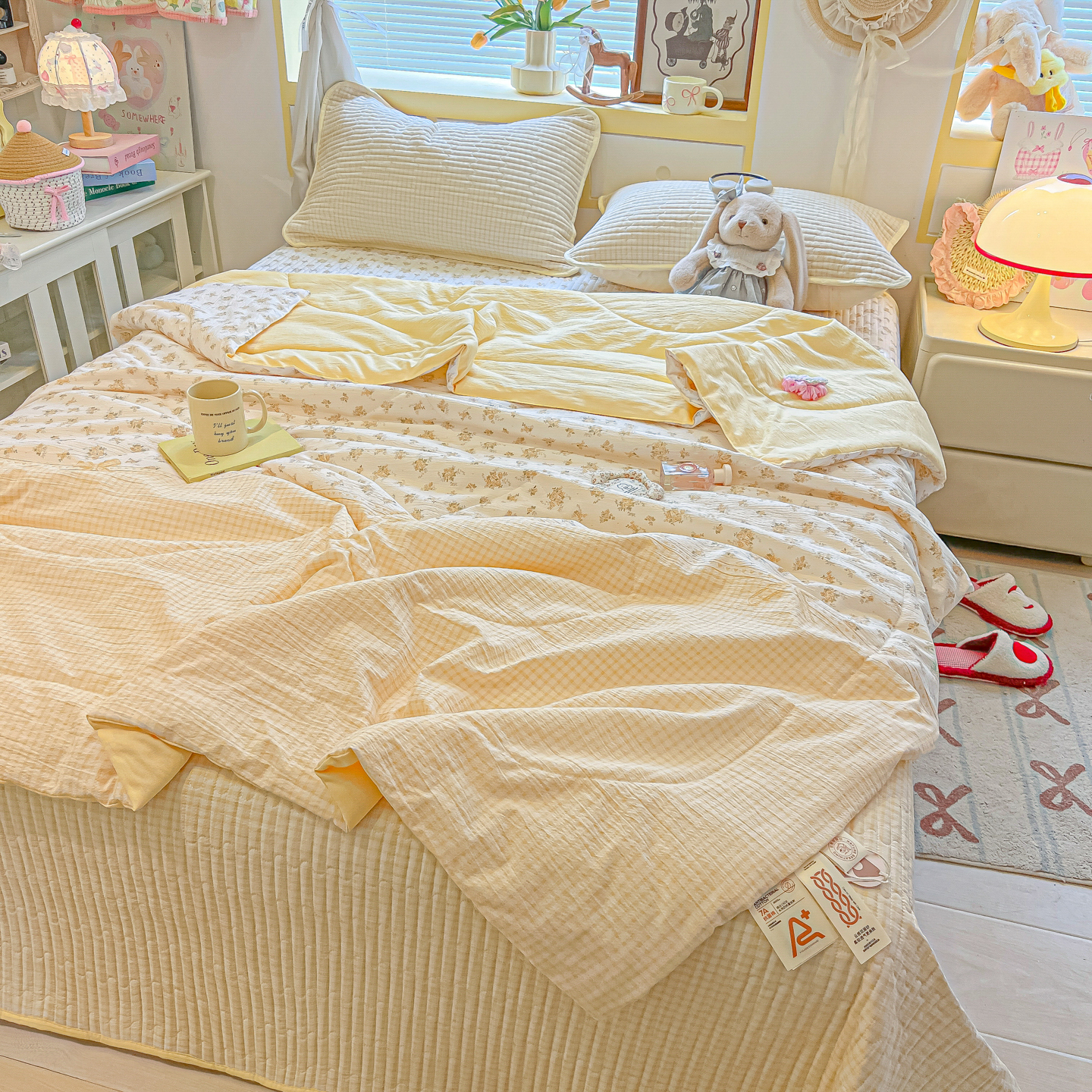 • 91家纺网 家纺一手货源 找家纺 乐逸家纺  2026新款A类云感双层纱夏被床盖四件套 暖花