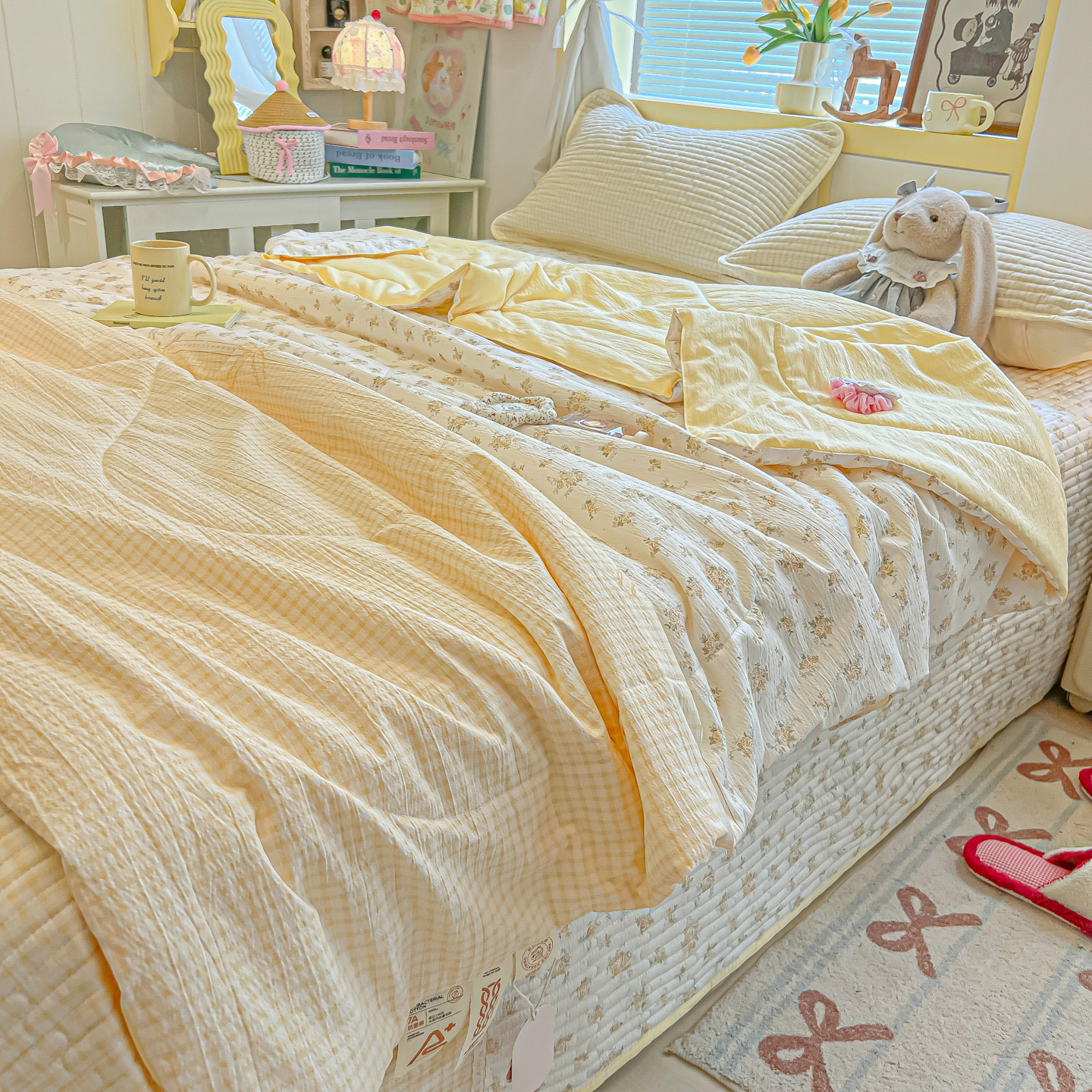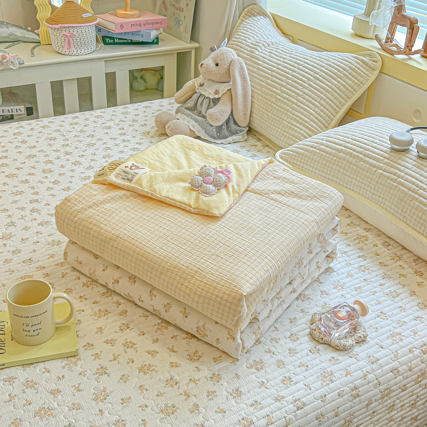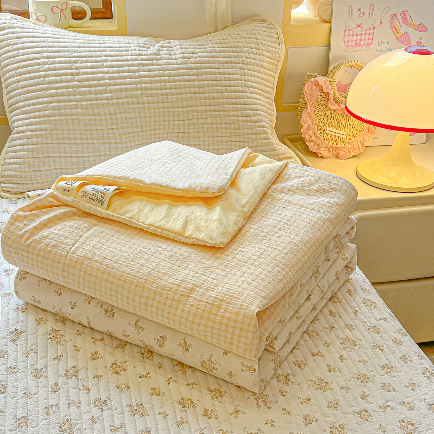 • 91家纺网 家纺一手货源 找家纺 乐逸家纺  2026新款A类云感双层纱夏被床盖四件套 暖花