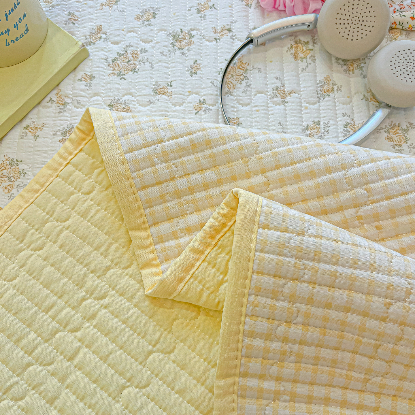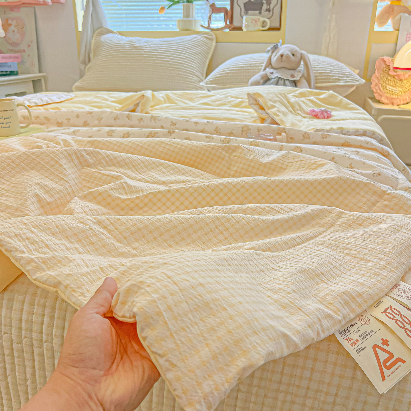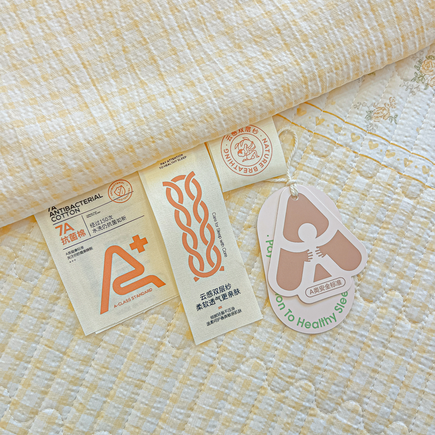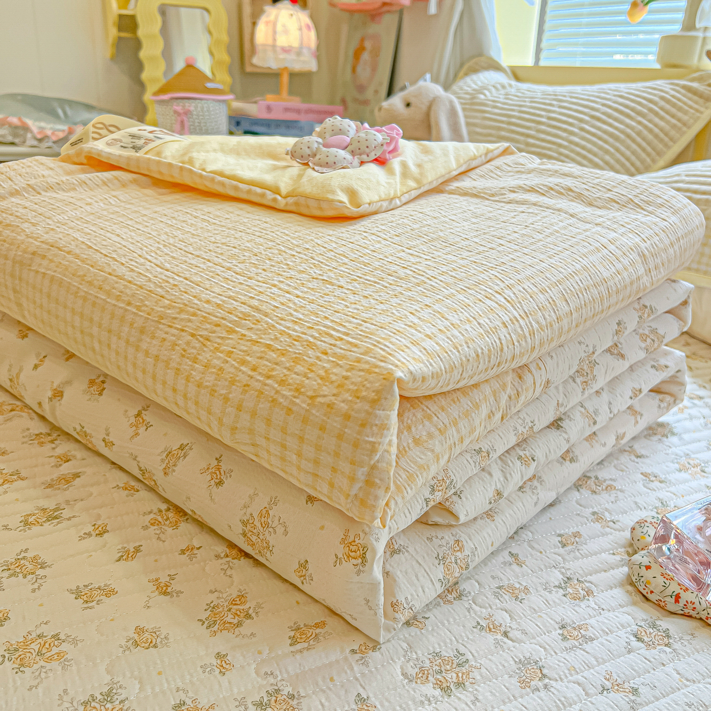 • 91家纺网 家纺一手货源 找家纺 乐逸家纺  2026新款A类云感双层纱夏被床盖四件套 暖花