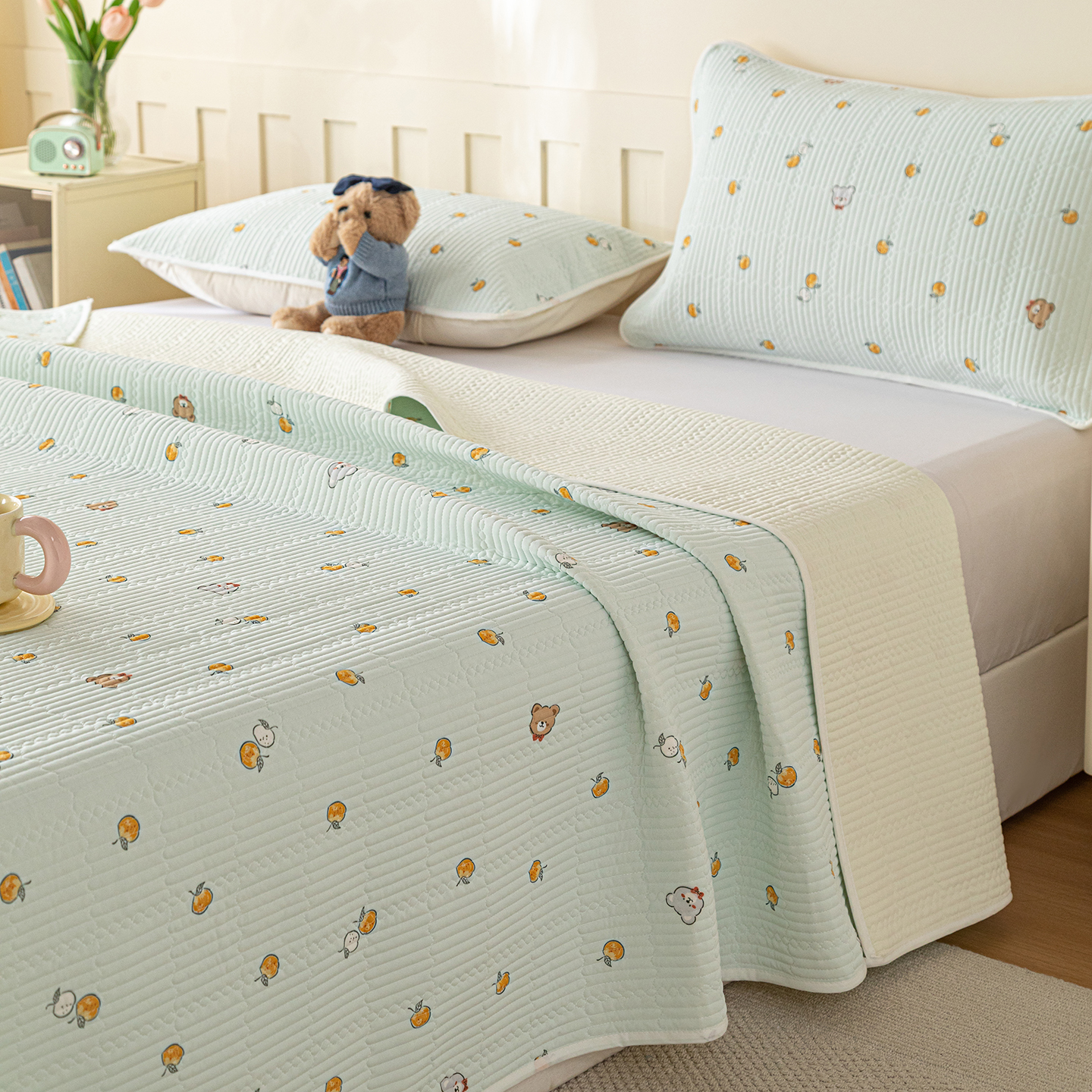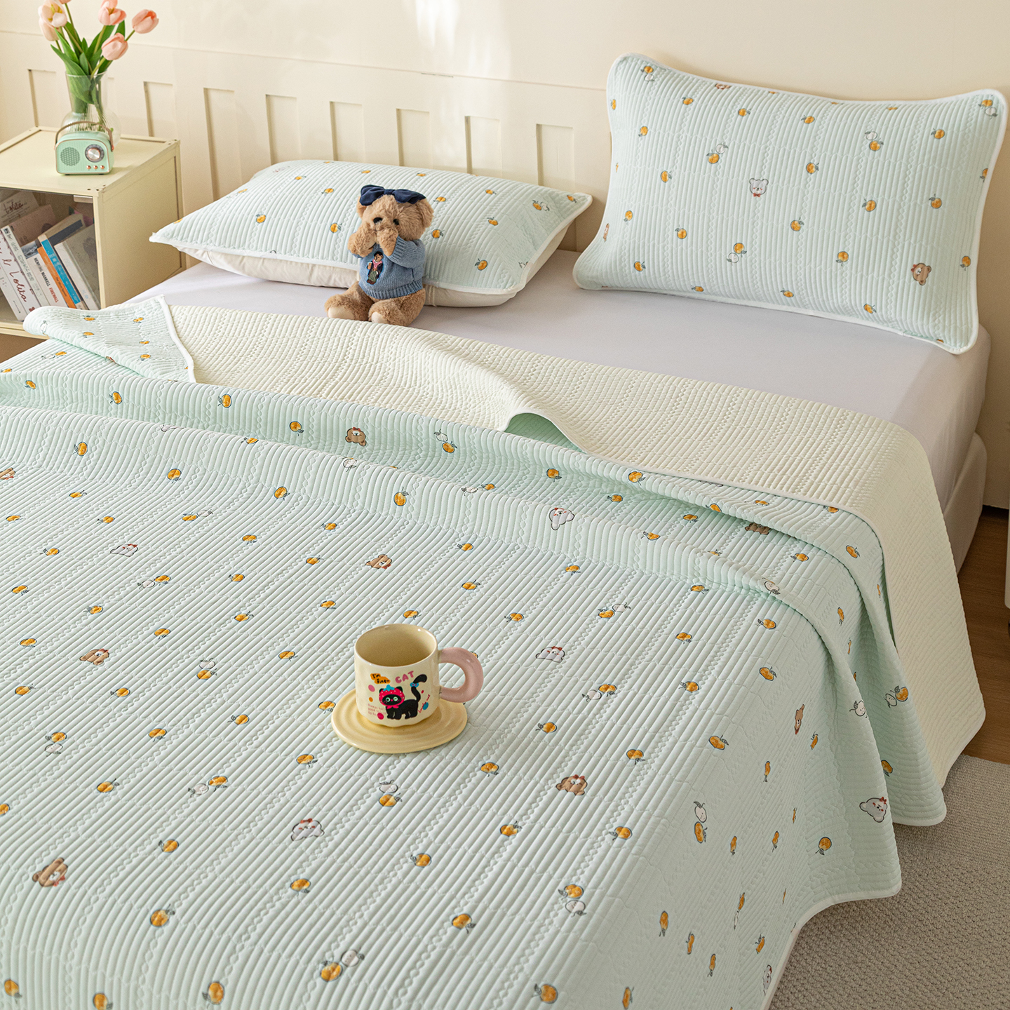 商品名称:源舜家纺 2026新款锦氨印花凉感床盖三件套 萌宠乐园