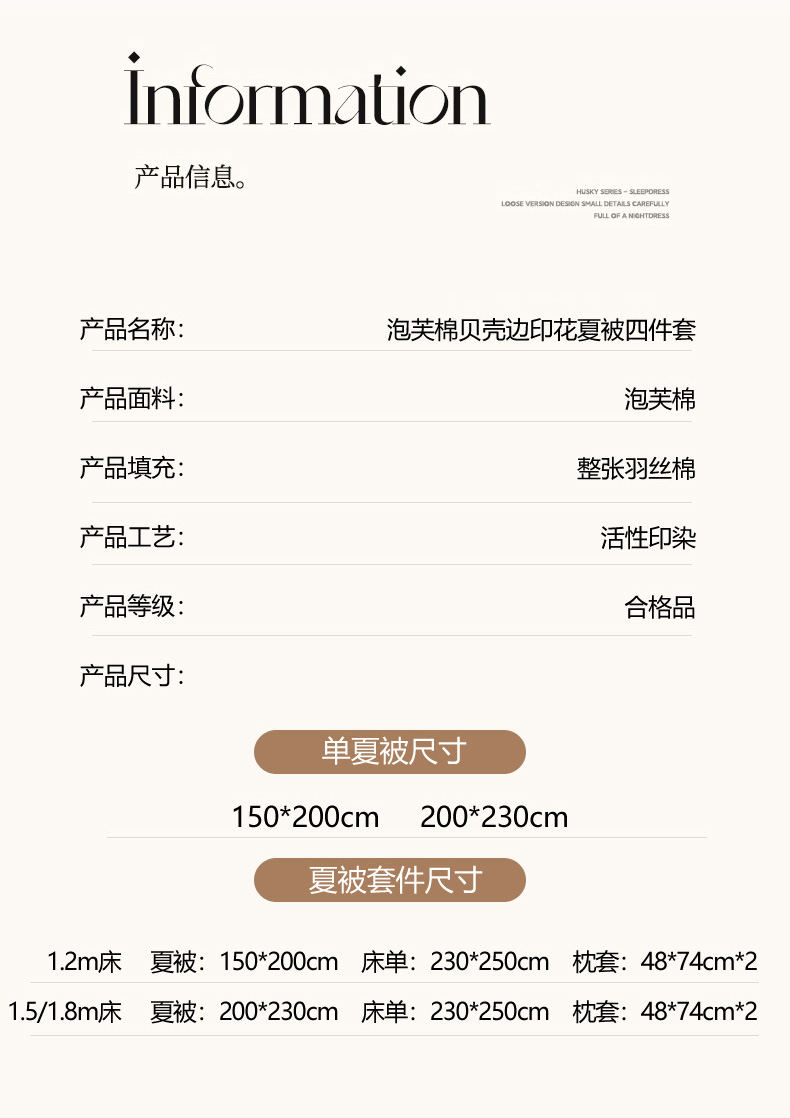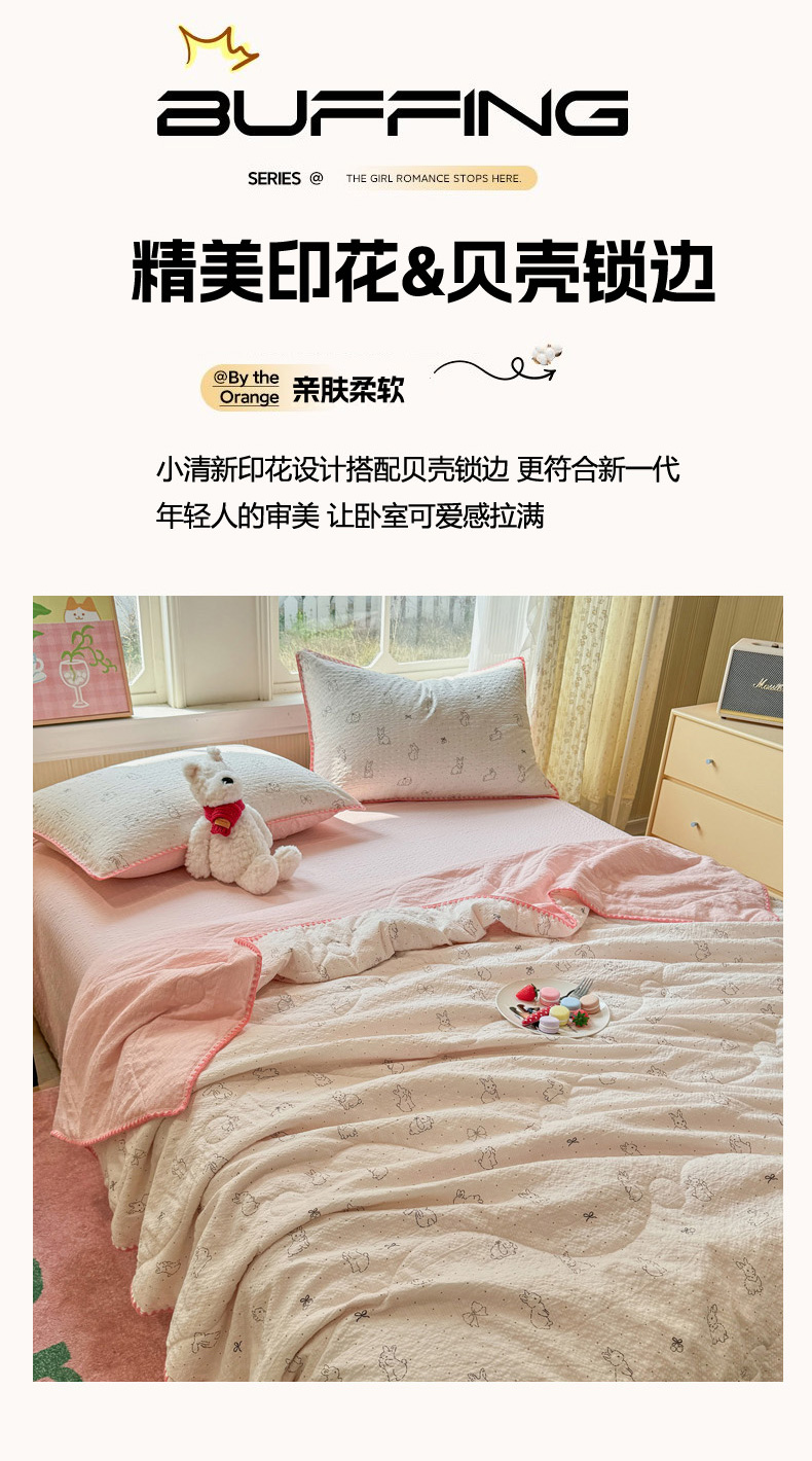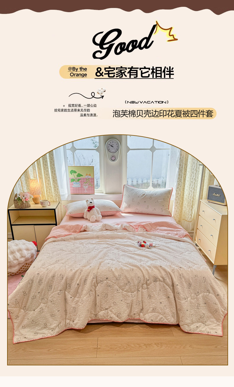商品名称:(总)慕澄家纺 2026新款泡芙棉贝壳边印花夏被四件套